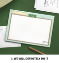 This beautiful B5 Overcome Memopad comes in 4 different designs: 1. We will overcome it, 2. Let's do it, 3. We will definitely do it and 4. Challenge. Please, see pictures for reference.
