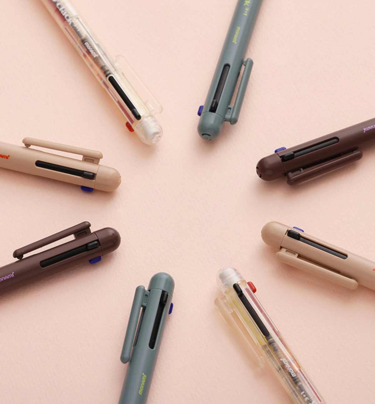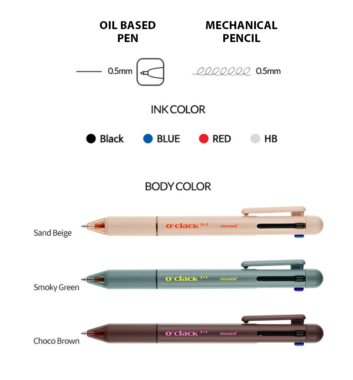 Body Color Sand Beige, Smoky Green and Choco Brown: 3 pen ink colors: Back, Blue and Red | Mechanical Pen: HP