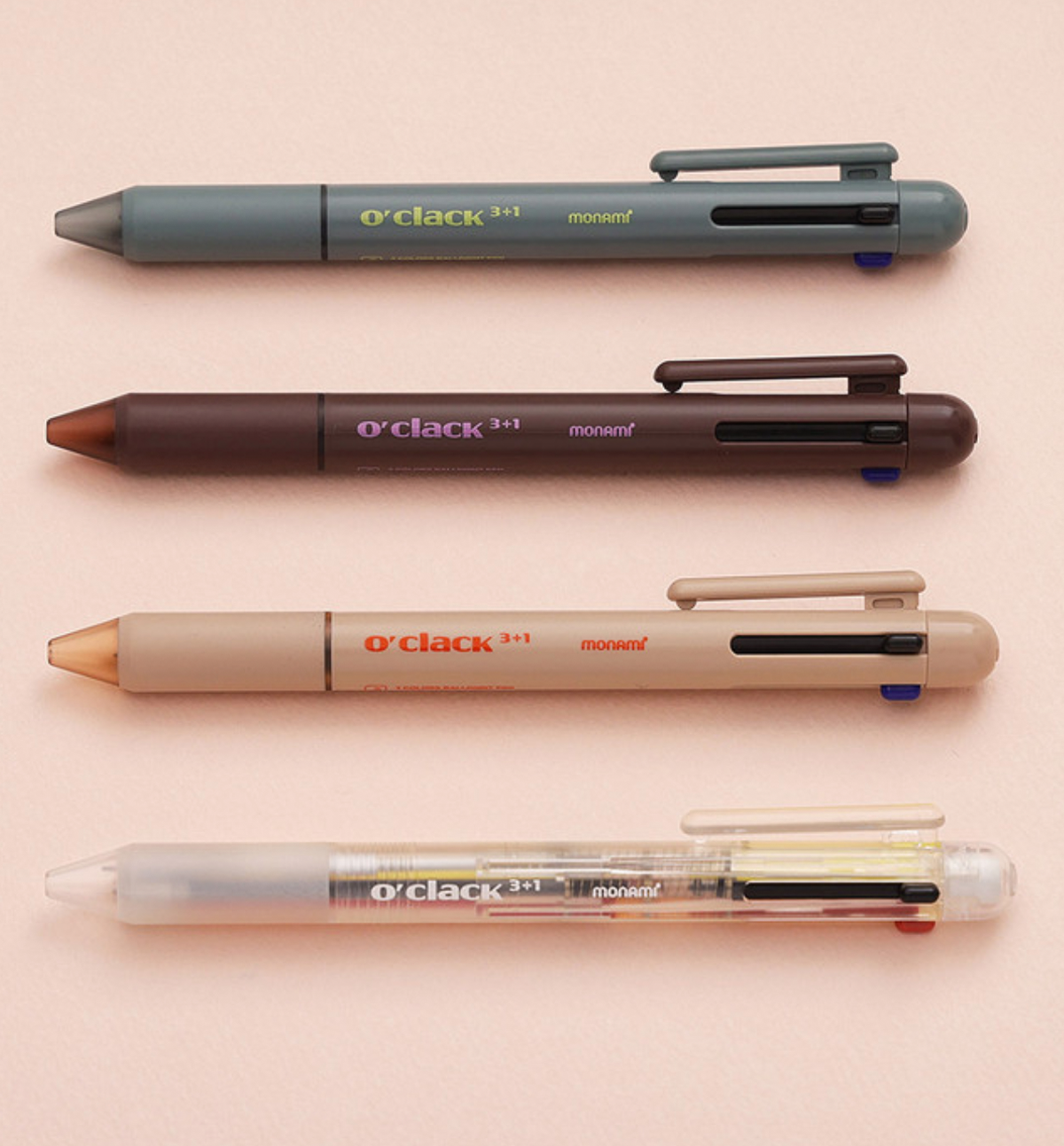 Applying a sophisticated matte design. The O'clack 3+1 with its matte feel, is produced in four body colors and delivers an overall calm and modern feel. It is a multi-pen that combines various functions and a sophisticated design.