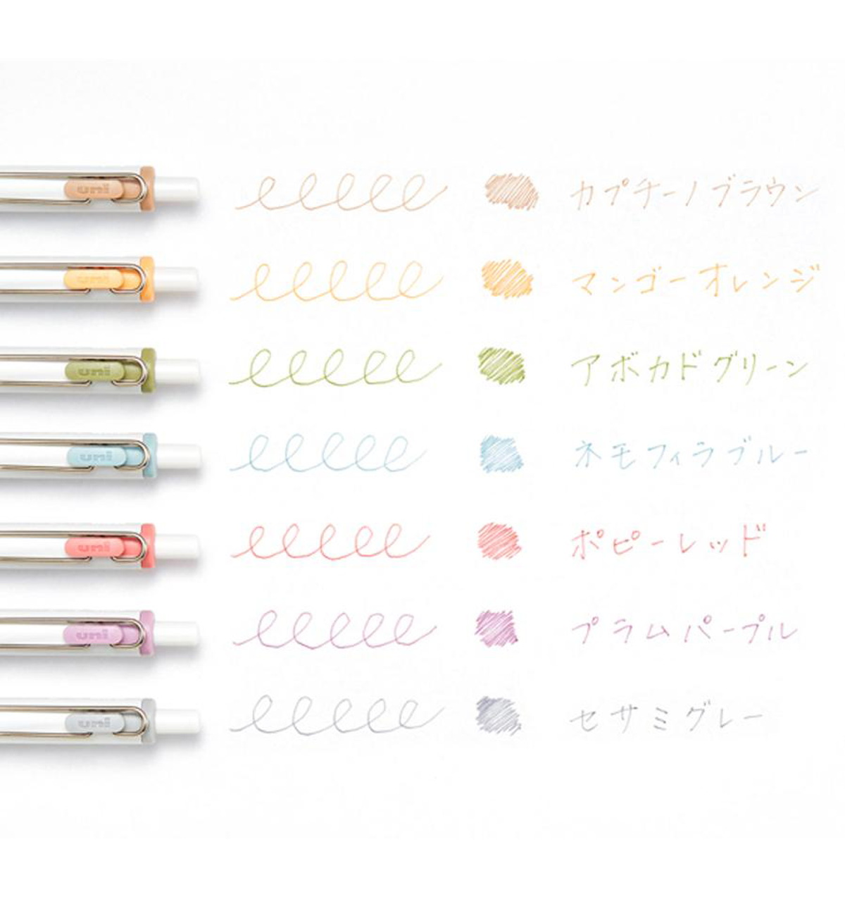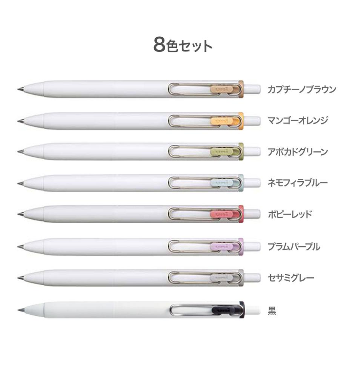 Introducing an eight-color set of the vibrantly colored Uni-ball one's muted FIKA colors. This assorted set of seven FIKA colors and black ink (a total of eight colors) will enhance your hobbies, such as decorating your planner or journaling.