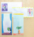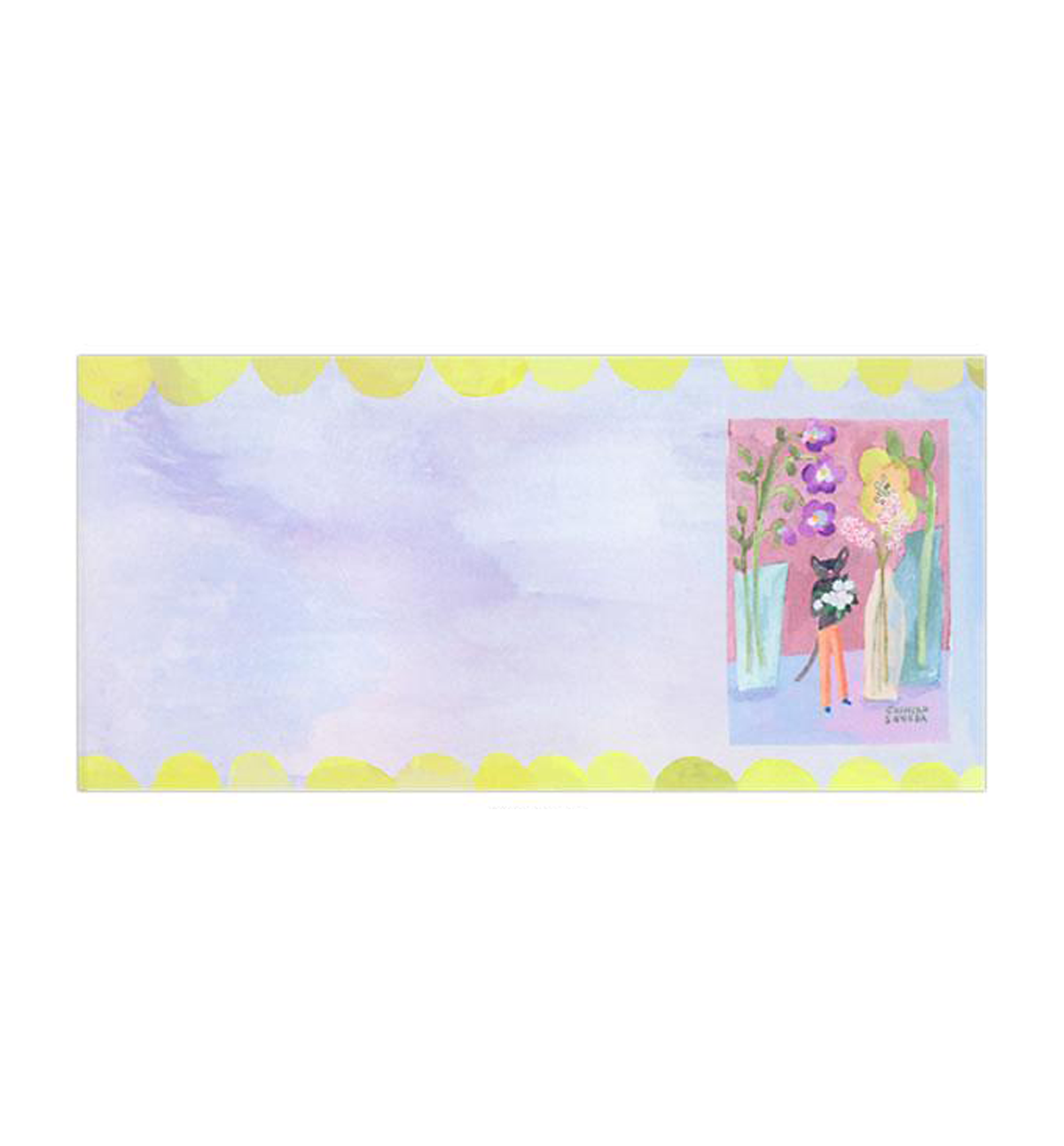 One-stroke paper by Chihiro Sonoda an artist known for her embroidery indexes for brooches and earrings. This stylish design is perfect for writing small letters or thank you notes. It uses fluorescent ink, so it's very gorgeous! You can also enjoy the rough texture of Mino washi paper [Luxury Japanese paper]