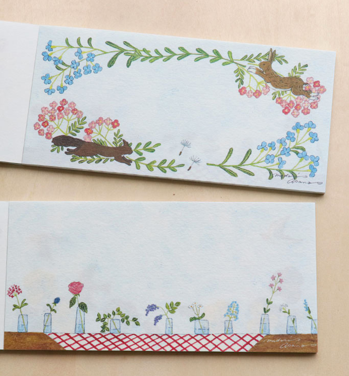 - Quantity: 1 Cozyca x Midori Asano Memopad [With Flowers] | 20 sheets [4 designs x 5 sheets]