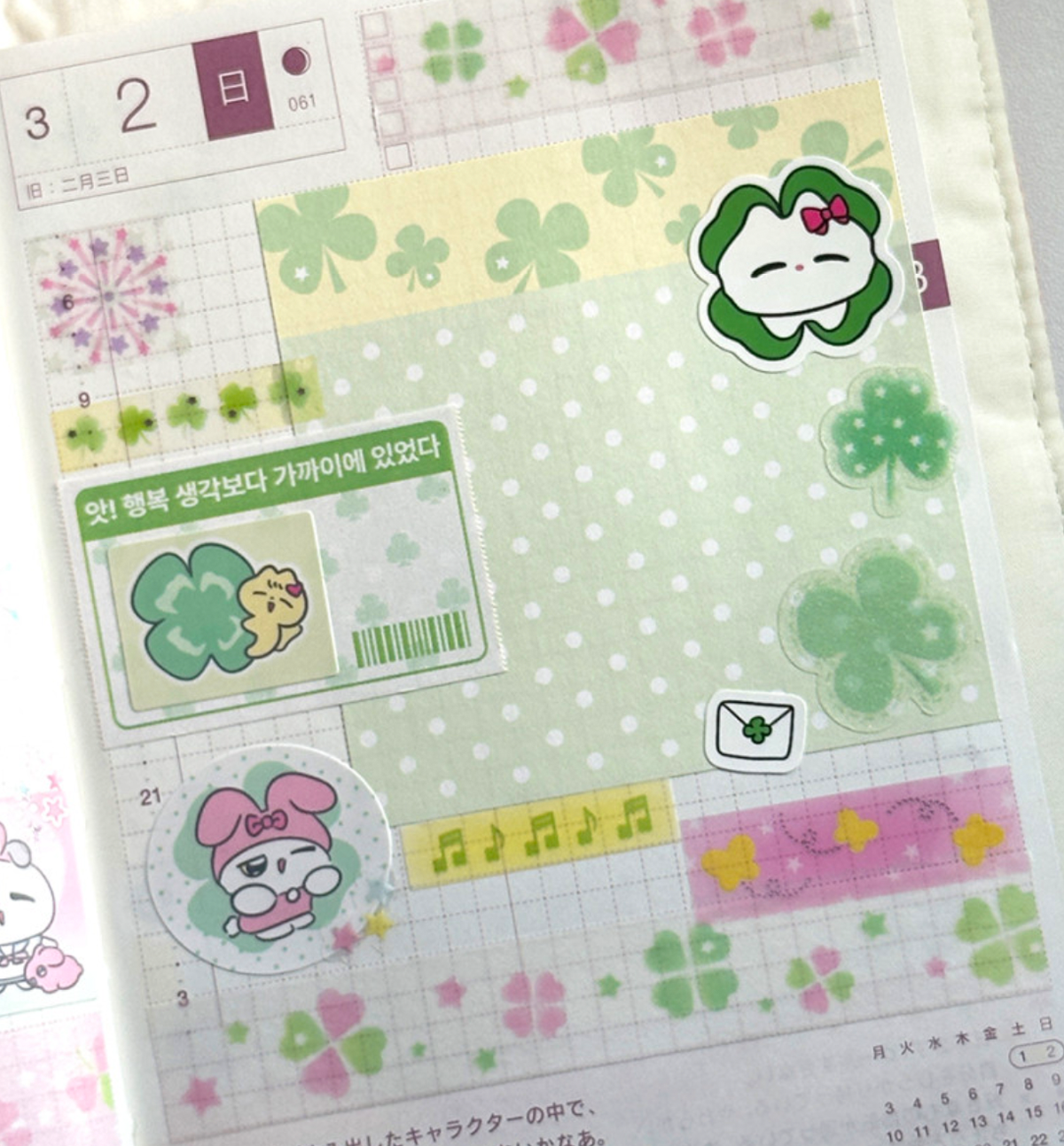 - Quantity: 1 Fluffy Clover Glitter Kiss Cut Washi Tape