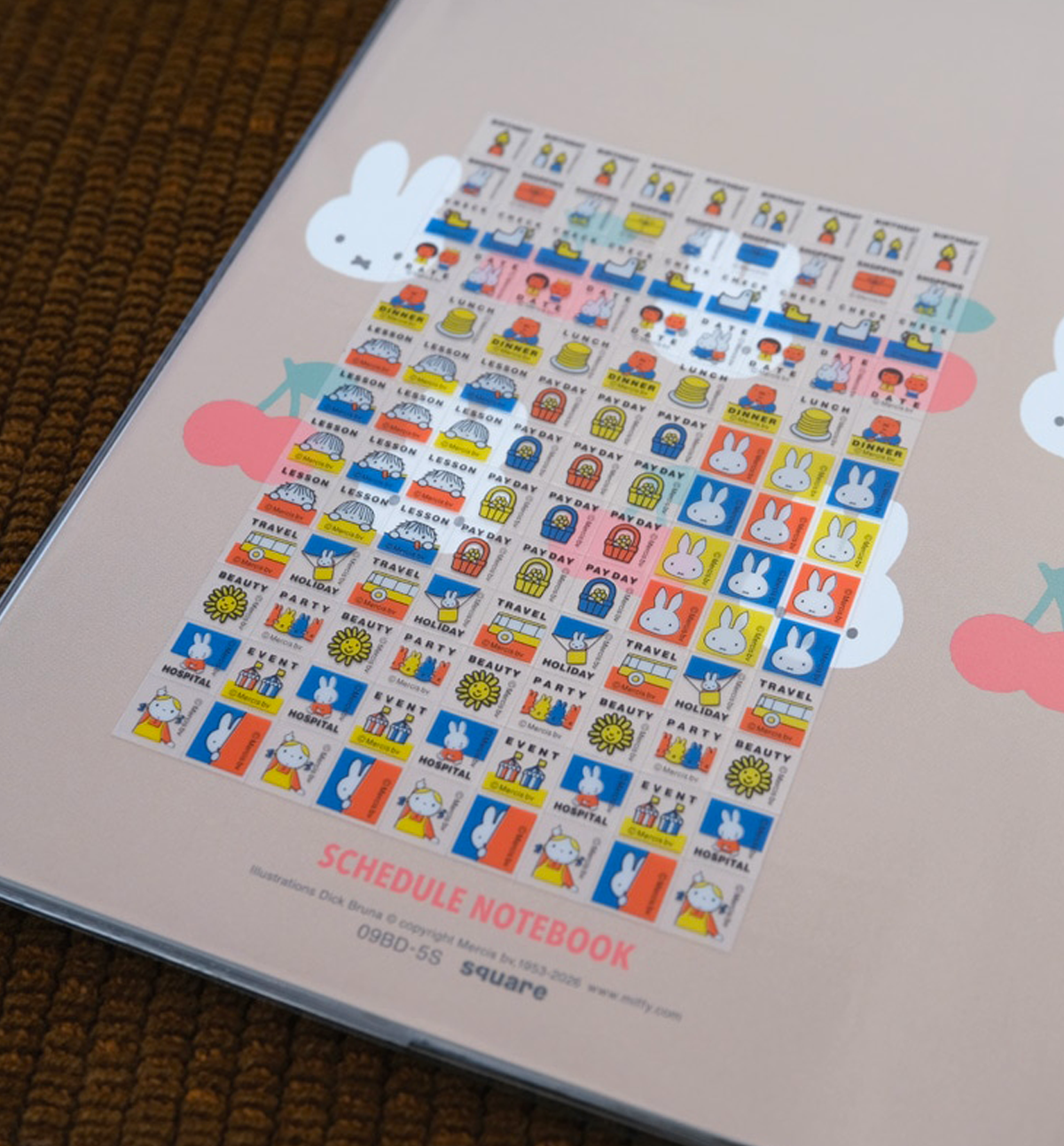 The notebook is beautifully decorated with colorful illustrations by Dick Bruna, featuring Miffy and friends, making planning more enjoyable throughout the year.
