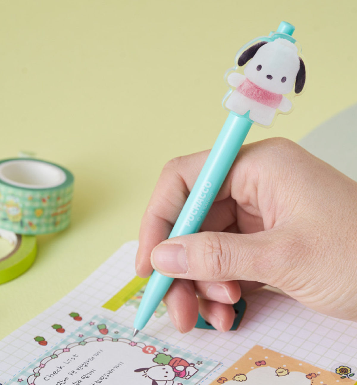 Peek! Sanrio Characters located at the top of the pen. Add cuteness and aesthetic to your pen. Character pen with cuteness and practicality. Write down the parts you want to remember!