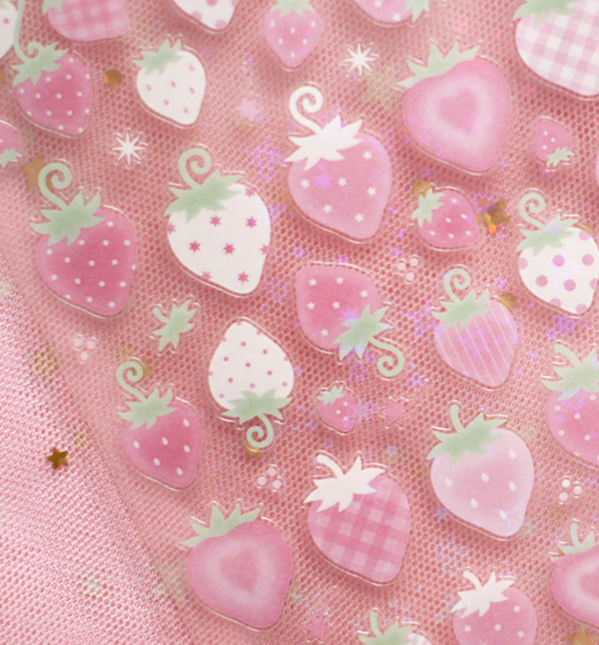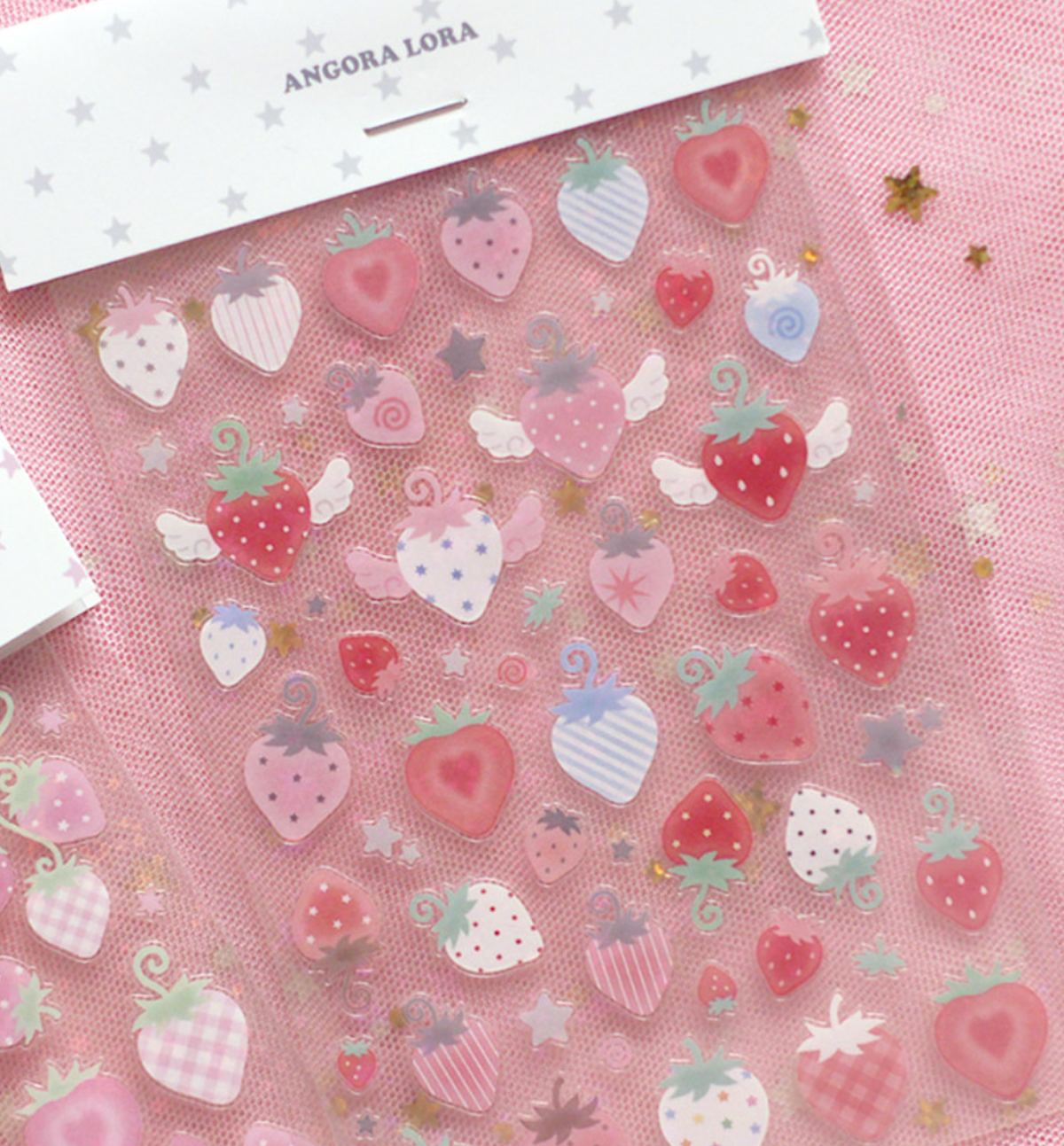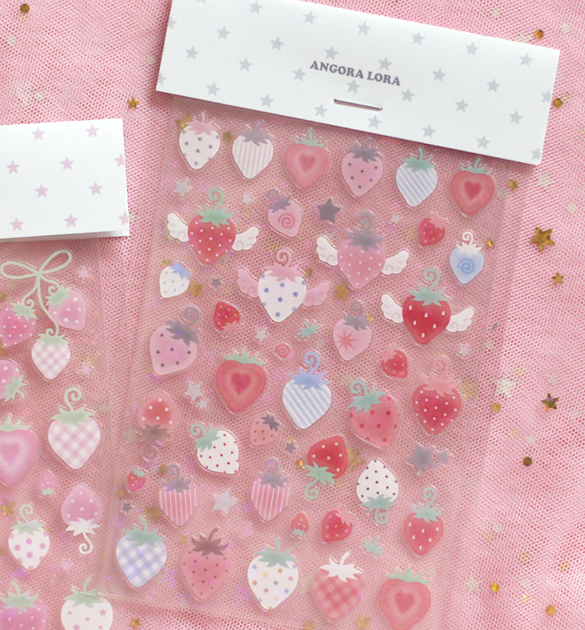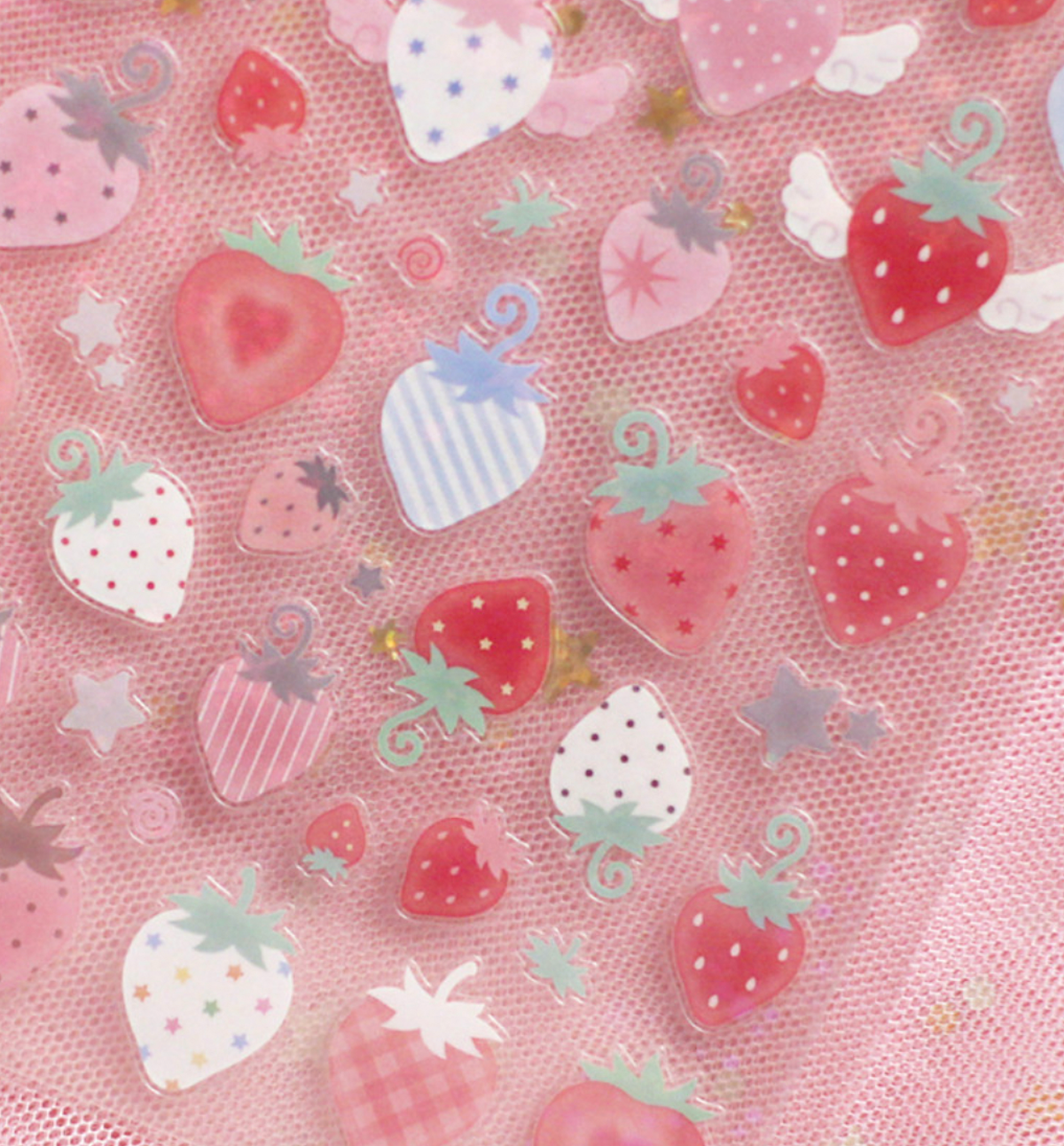 Strawberry Vine & Angel Strawberry Transparent Seal Sticker