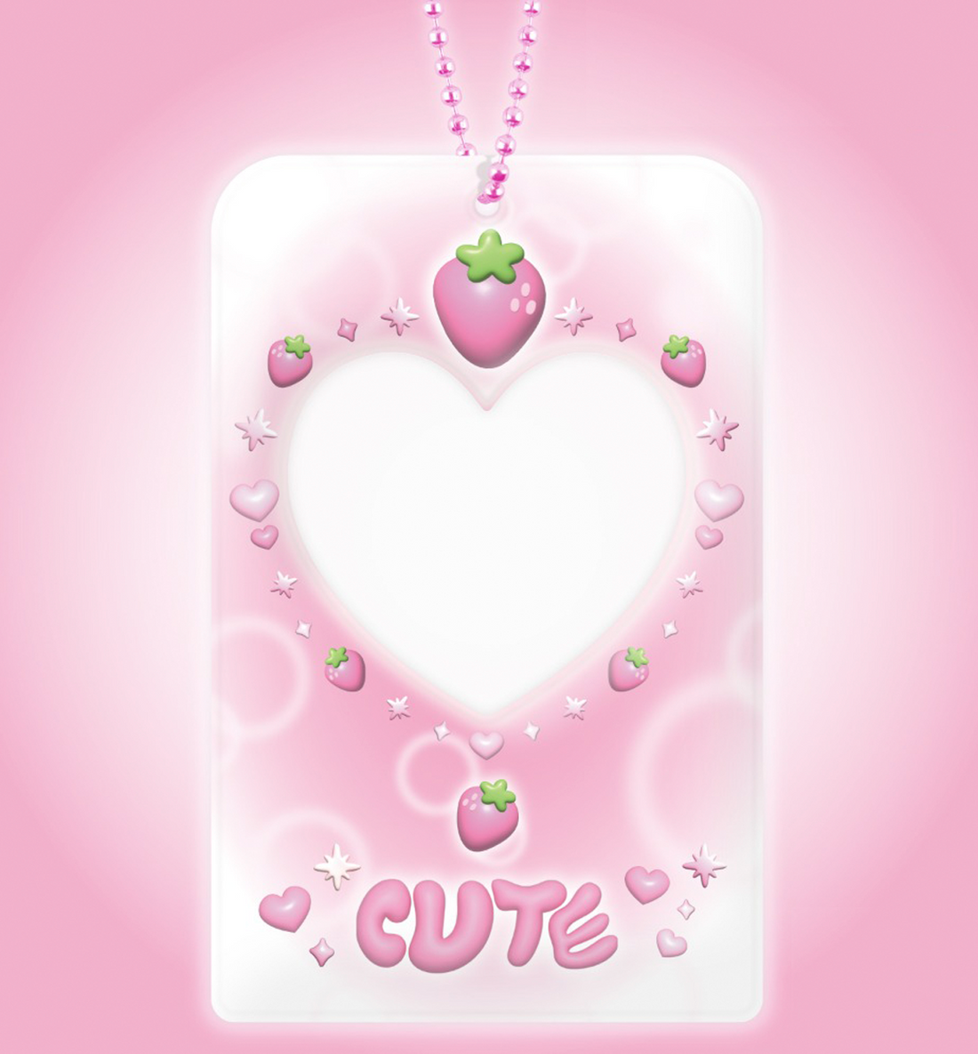 Cute & Cool Heart Charm Photocard Holder [Pink Strawberry]
