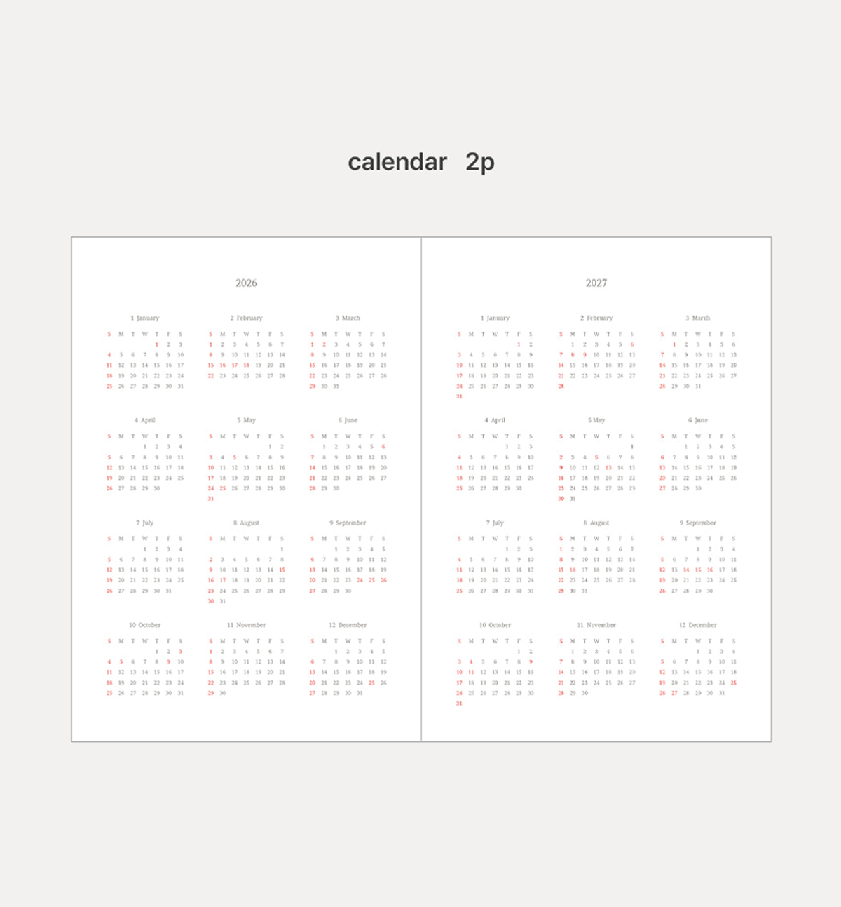 *Korean holidays are pre-marked throughout the calendar’s dated pages. But you can always add your personal holidays.