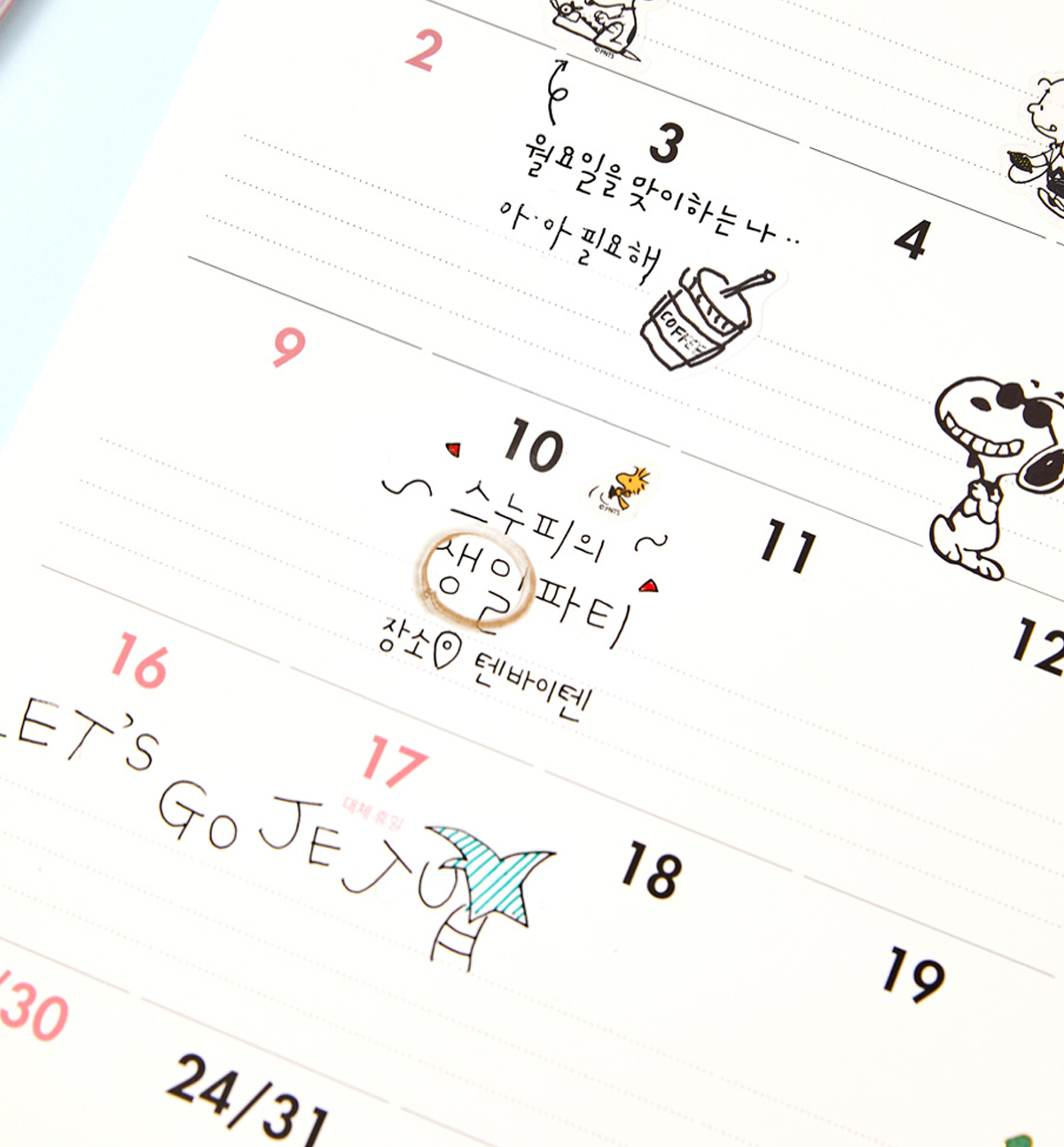*Korean holidays are pre-marked throughout the calendar’s dated pages. But you can always add your personal holidays.