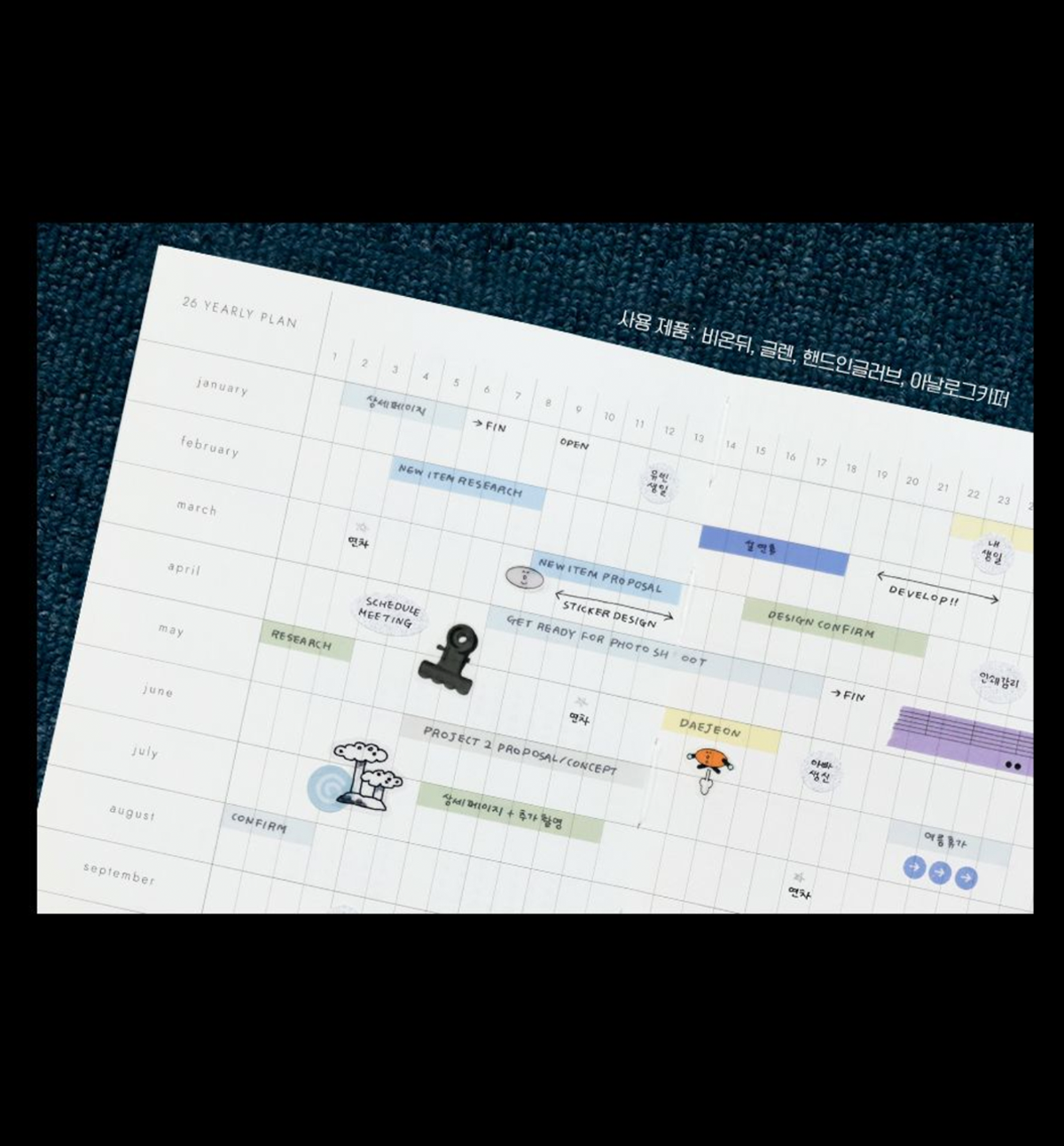 The planner features 12 months of dated weekly layouts with long, horizontal pages—perfect for tracking anniversaries, exams, projects, and special moments that turn each day into a scene. Available in 6 different cover colors, it’s both practical and stylish for everyday use.