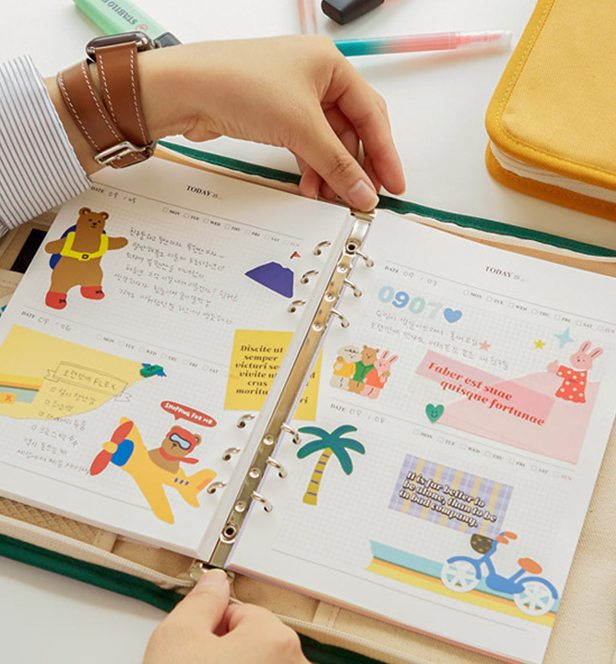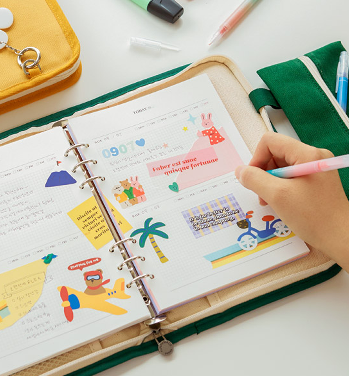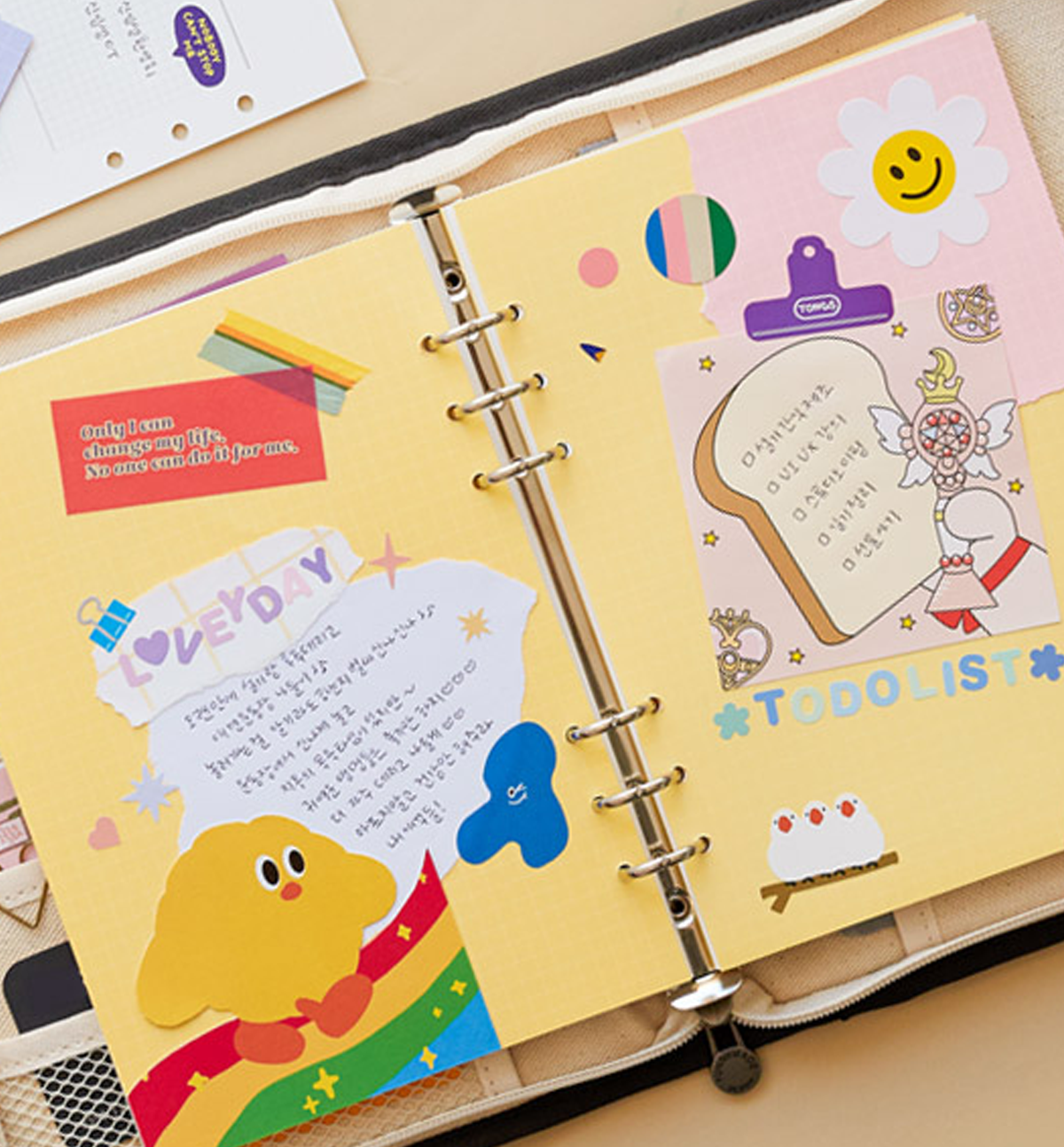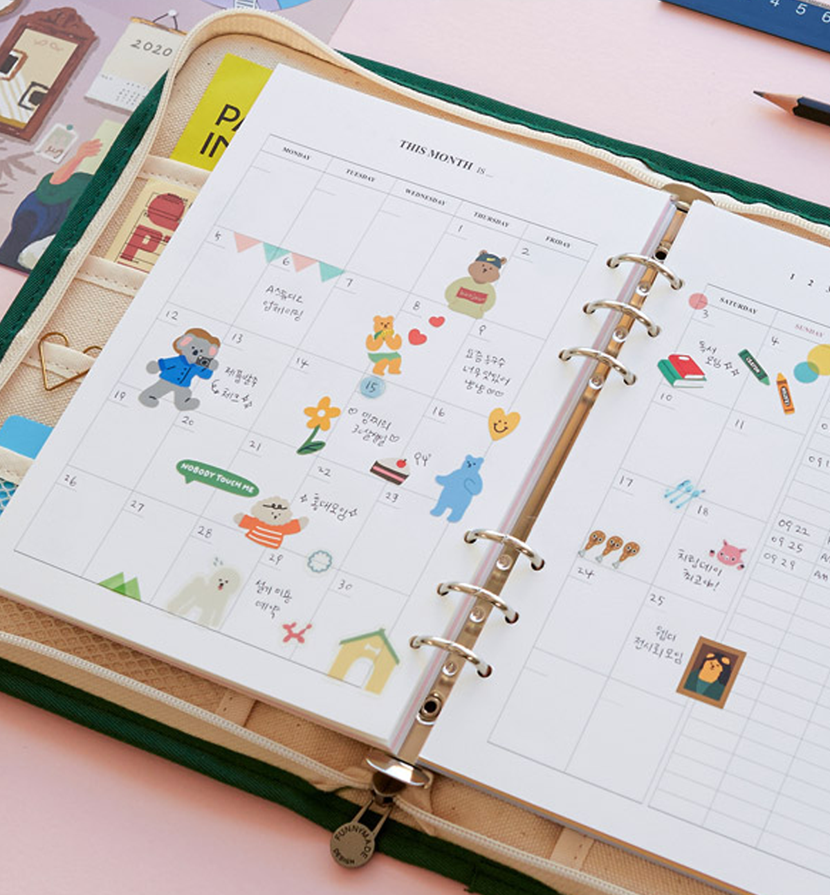 This listing is only for A5 Binder Canvas Cover and the pencil case [as it shows in the pictures]. No bookmark, no tassel, no keyring, no inside refills included, nor any the accessories included.