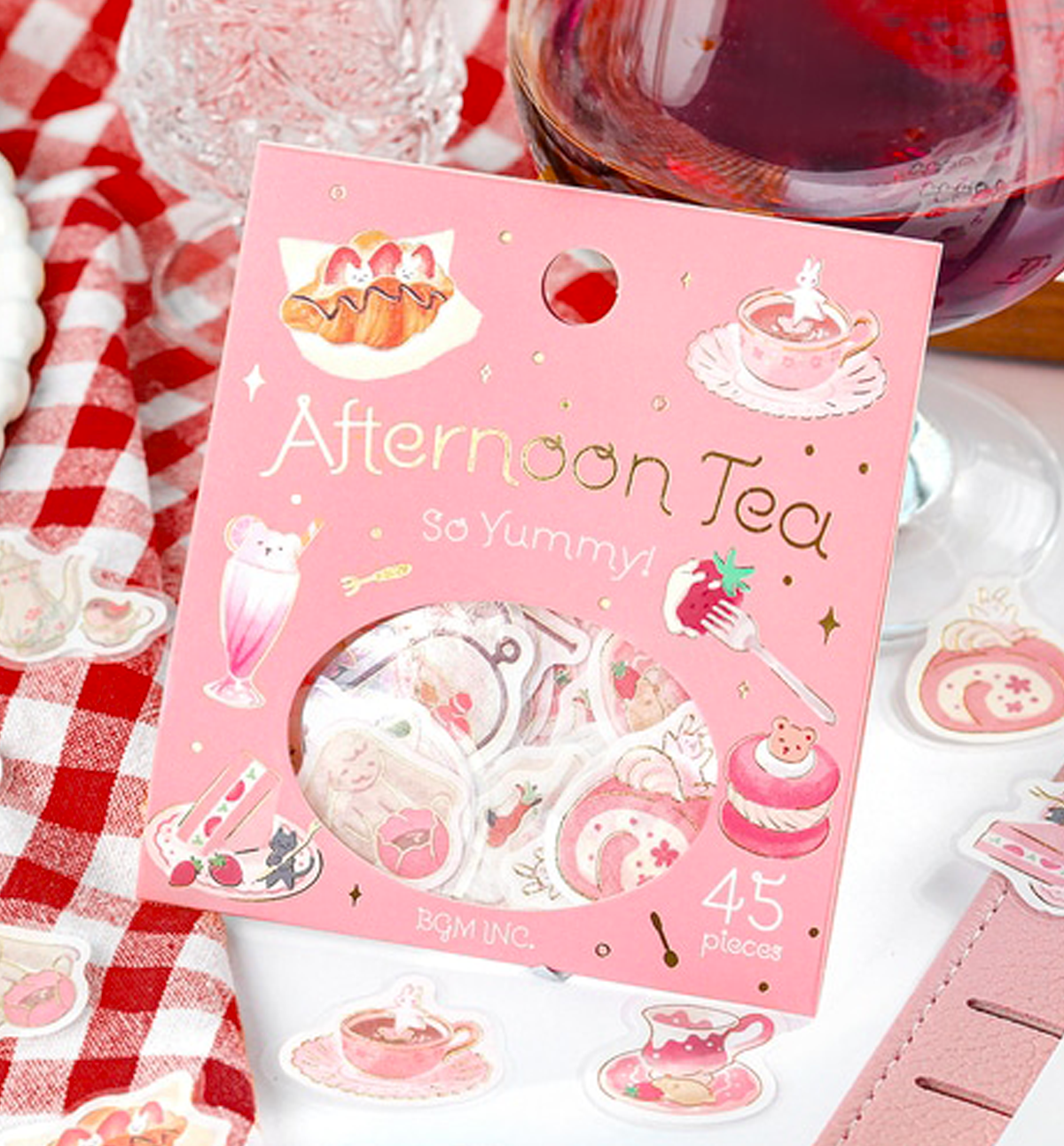 This beautiful Post Afternoon Tea Party "Let's Eat Snacks" Seal Sticker [Gold Stamping] has gold foil gilded finish.