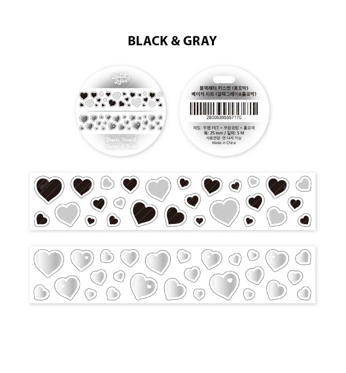 - Quantity: 1 Basic Heart Kiss Cut Washi Tape