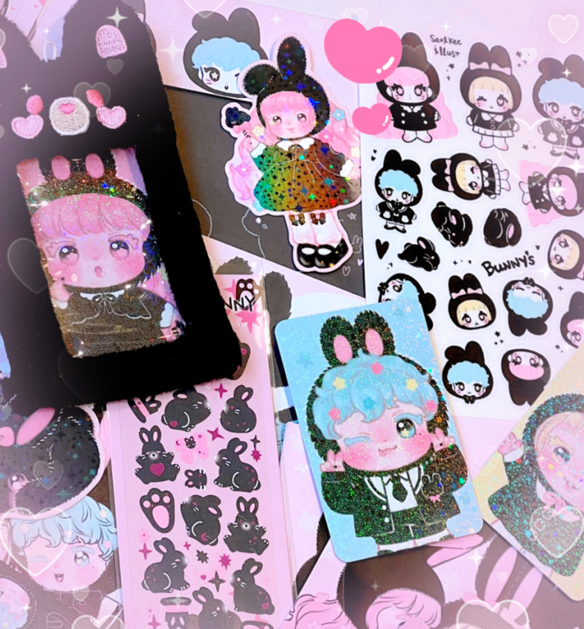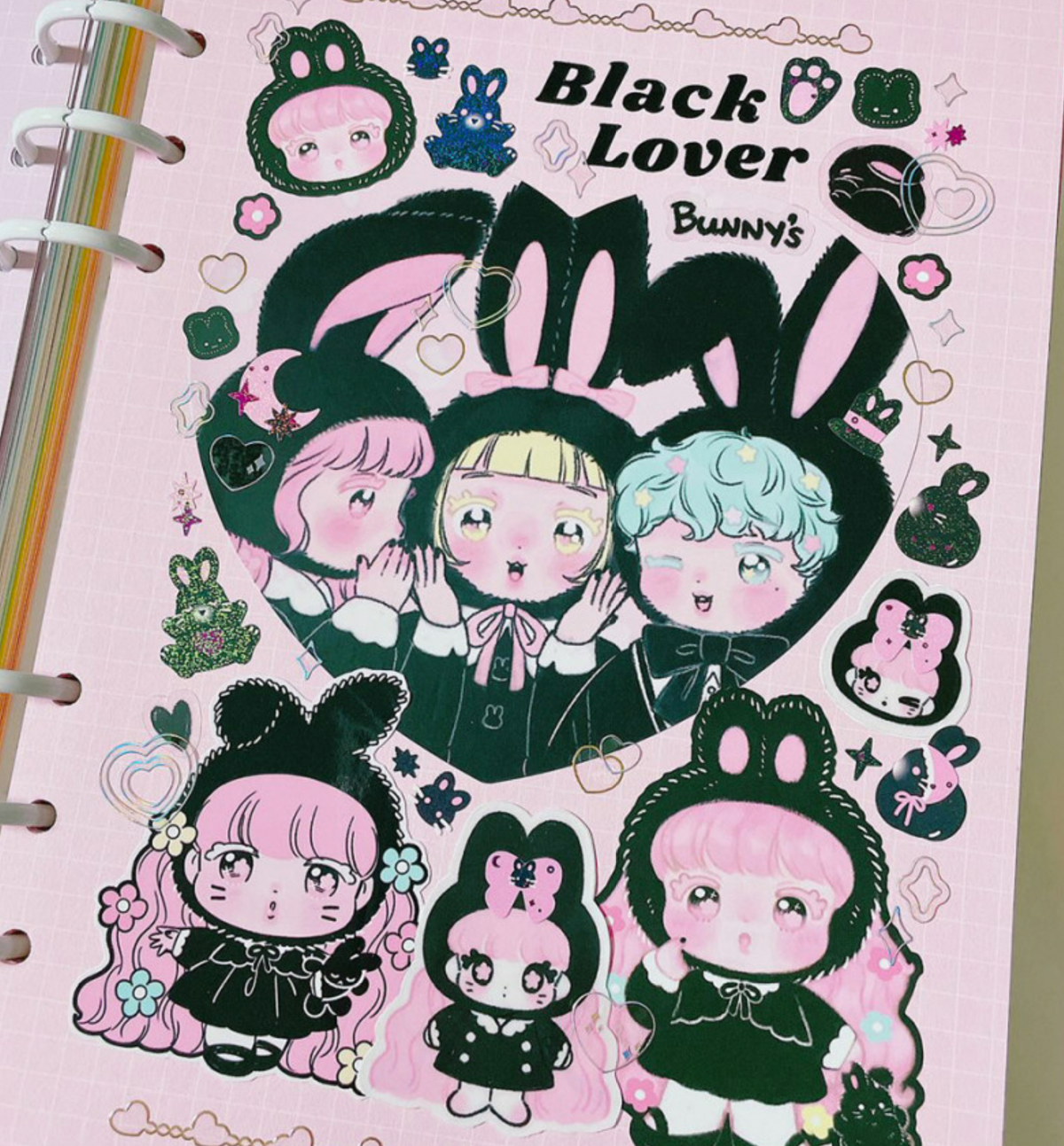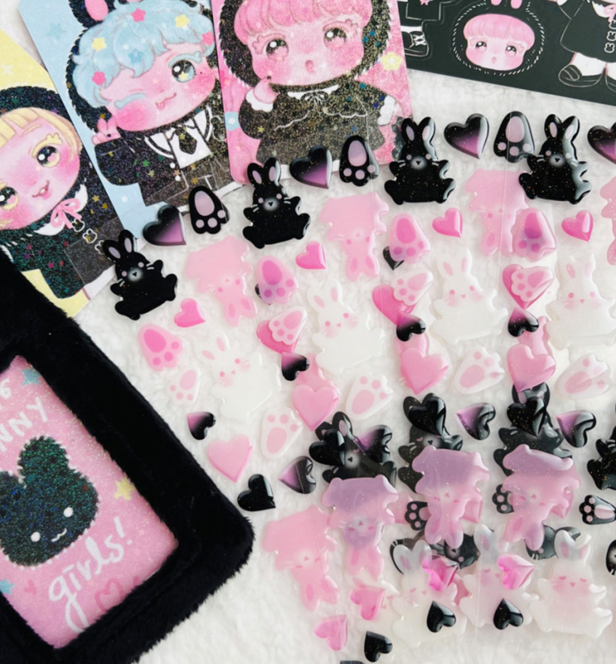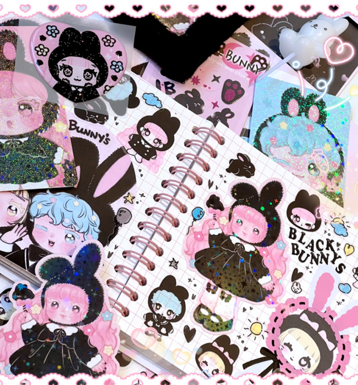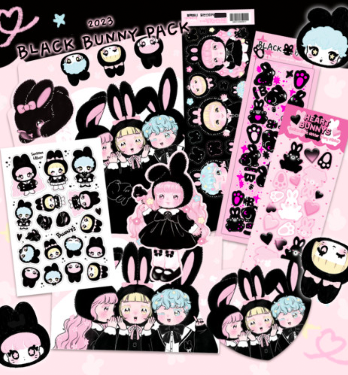 - Quantity: 1 Black Bunny Sticker Pack | 8 stickers | 1 envelope | 1 postcard