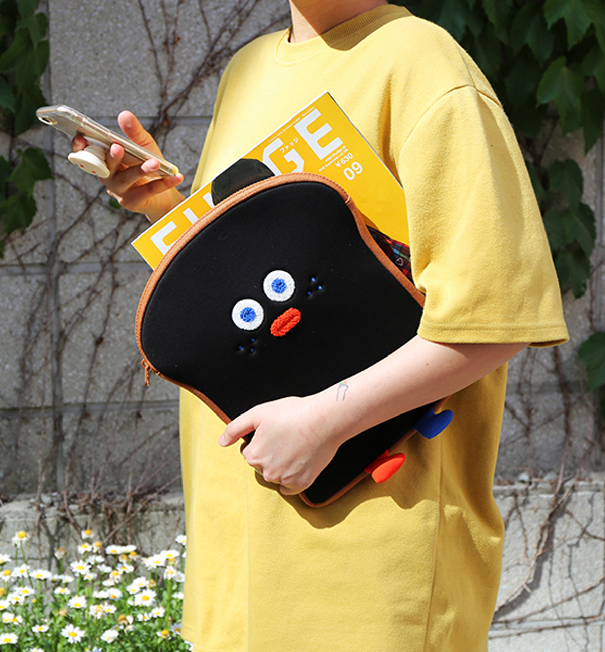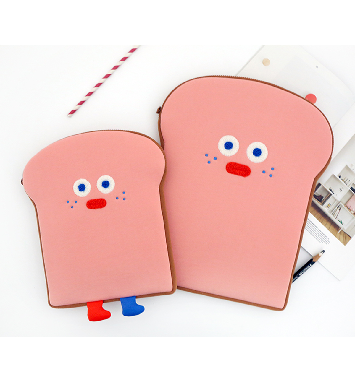 The toast face is beautifully detailed with embroidery, giving it a charming and high-quality finish. Made with soft polyester and sponge padding, the pouch provides excellent cushioning to help protect your device from external shocks, scratches, and dirt.