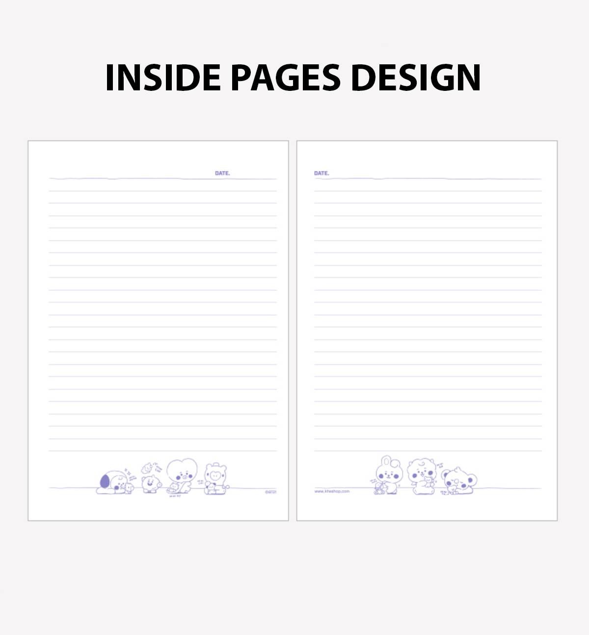 This BT21 Spring Line Notebook With Front Pocket [My Little Buddy] comes in 2 colors designs: Yellow and Purple. Only the cover design changes, the inside pages are the same design for both of them.