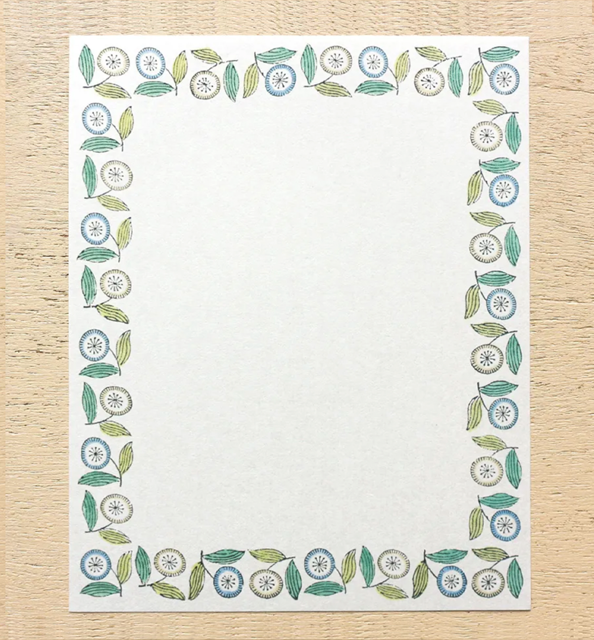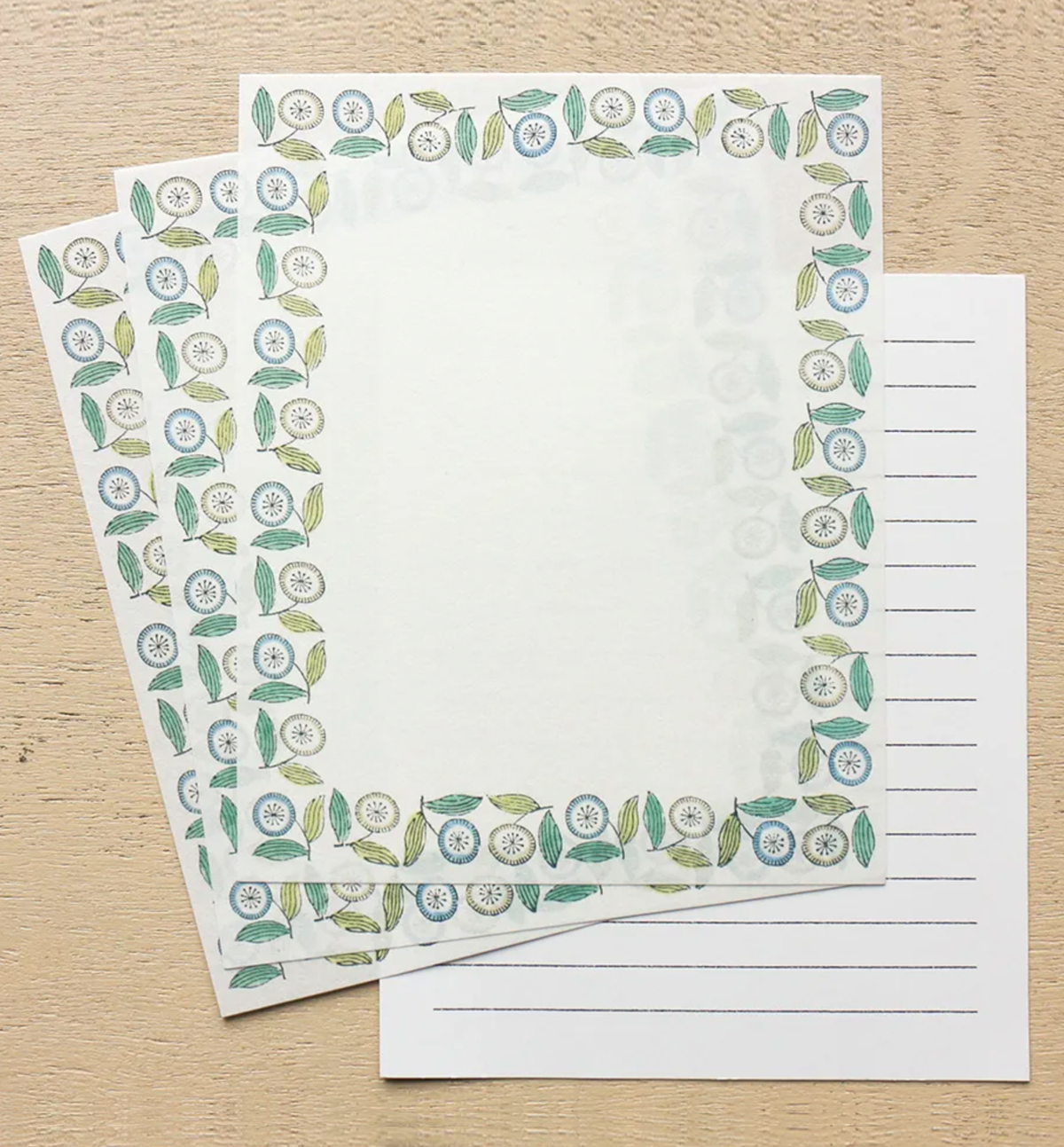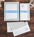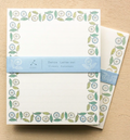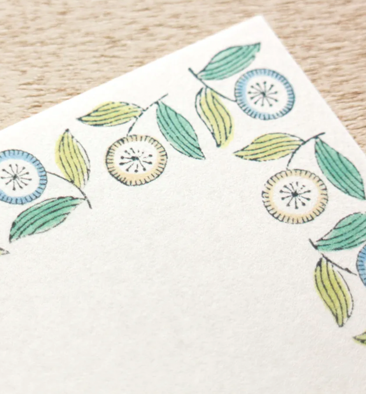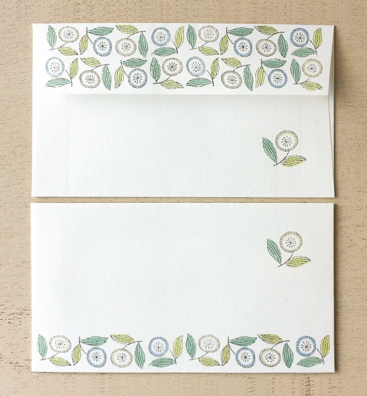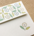 A letter set from admi, a textile brand that uses traditional Indian woodblock printing techniques and high-quality Indian cotton to create its fabric.s. The design was actually created by scanning admin fabrics, so you can feel the warmth that only fabric can give. Green and blue flowers lined up like they're dancing.