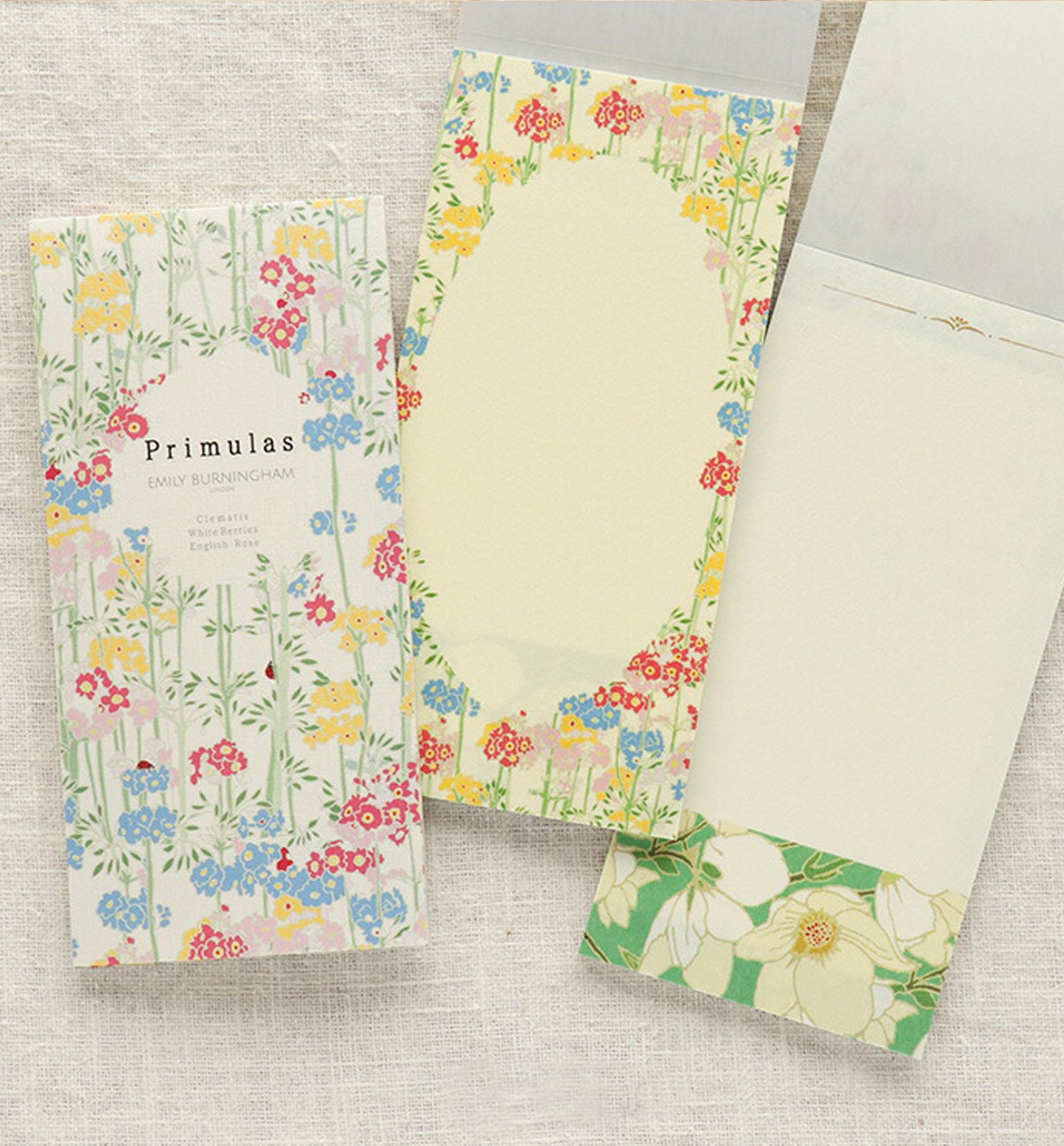 • Quantity: 1 Cozyca x Emily Burningham Memopad [Primulas] | 20 sheets [4 designs x 5 sheets]