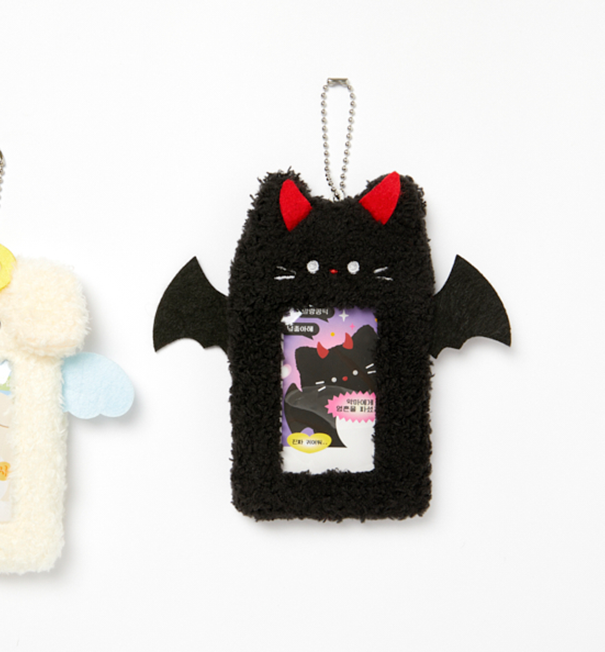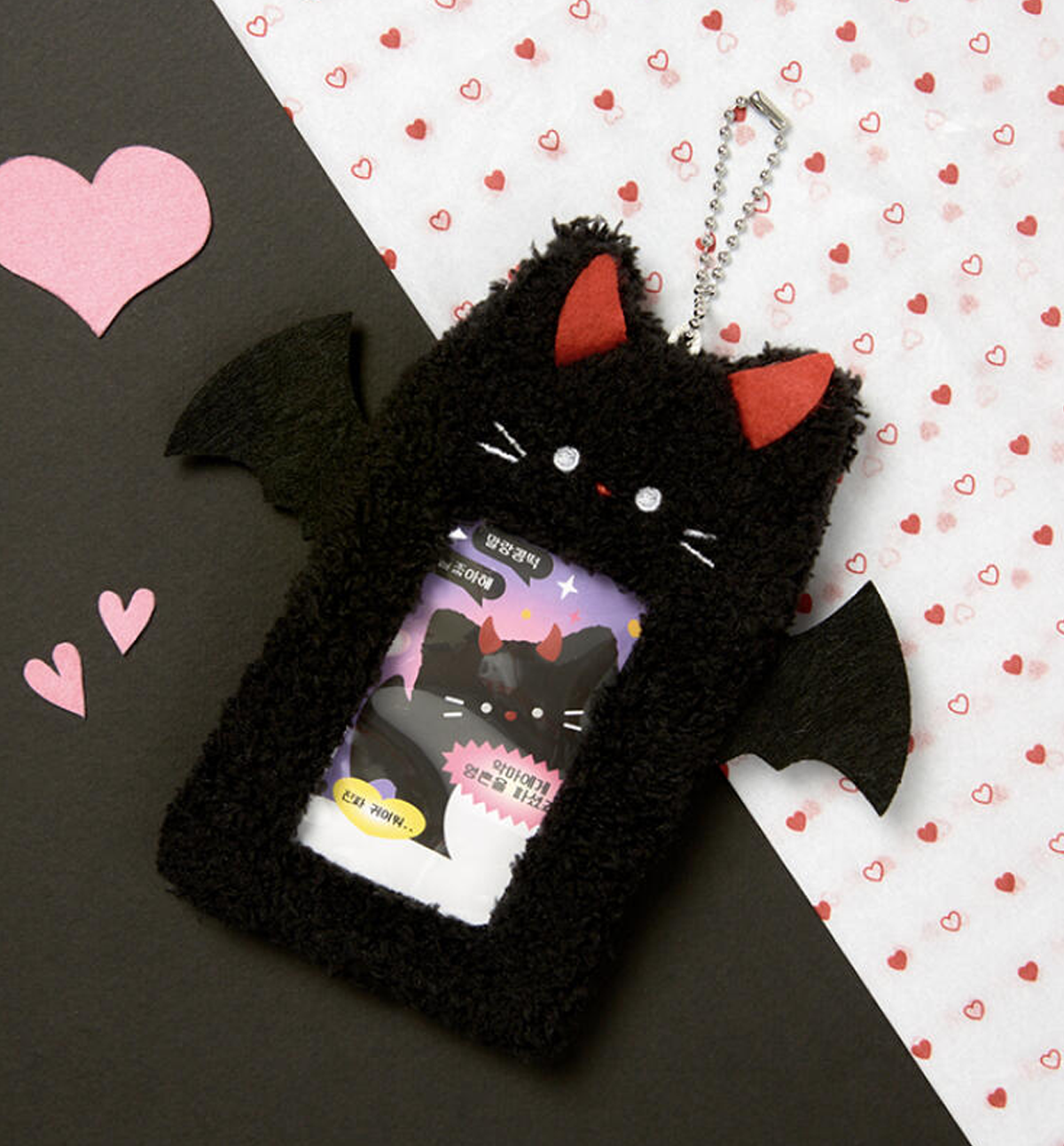 Introducing a cute devil cat fur photocard case. It is made of fluffy fur fabric, so you can feel the soft texture.