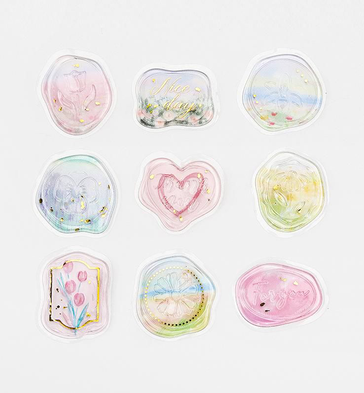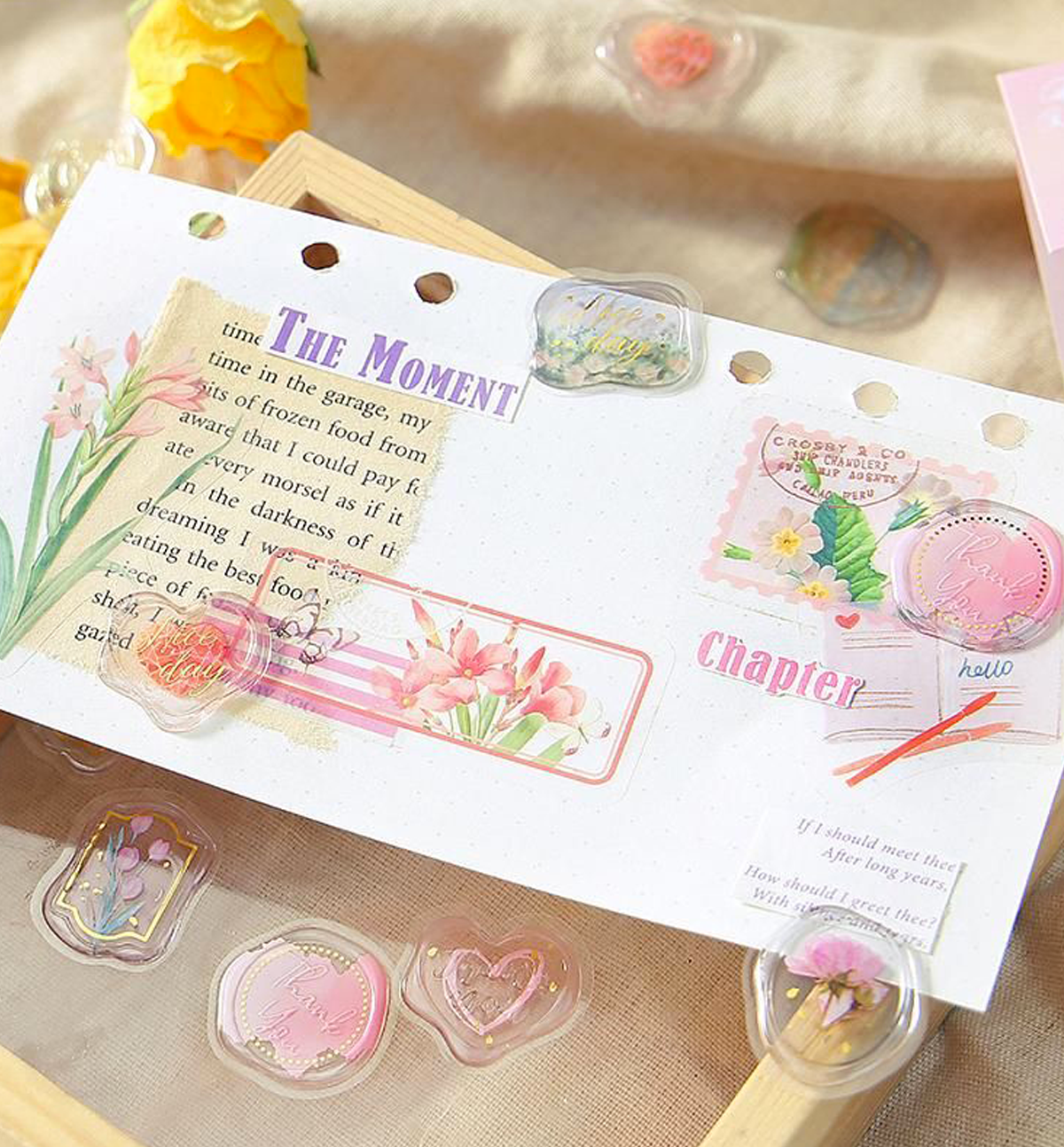 A transparent sealing stamp-style sticker. Just stick it on to create a cute decoration. Perfect for sealing invitations and letters, collages, gift wrapping, and more.