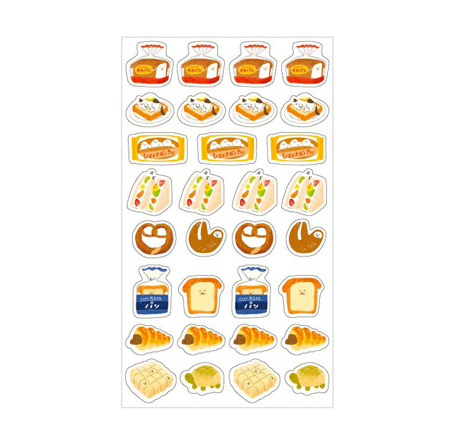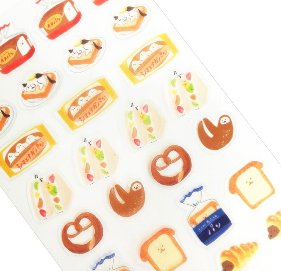 - Quantity: 1 Furukawashiko Sweets & Animal Workshop Clear Sticker [Bread] | 5 designs × 4 sheets each = 20 stickers total