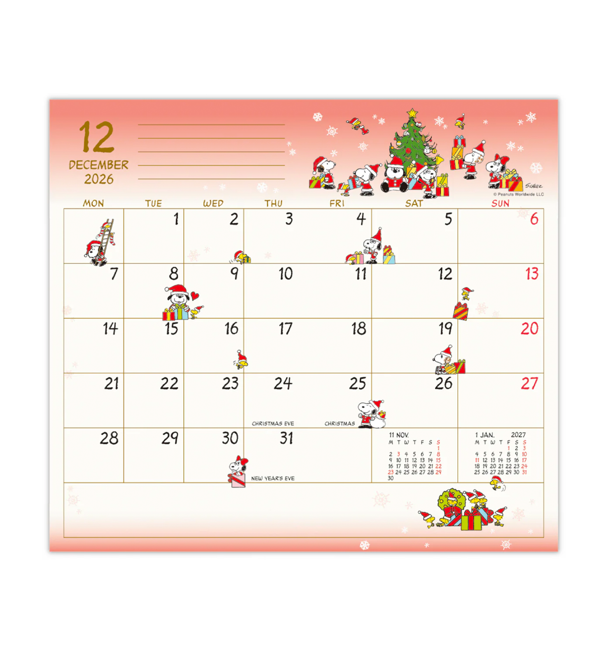 • Cute illustrations: Holidays and special events are marked with adorable Snoopy artwork.