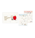 Bring a touch of cuteness to your space with this Snoopy calendar featuring an adorable hugging design. Its compact bifold style makes it easy to store, and when unfolded, it transforms into a small wall-hanging calendar. Designed for clarity, the larger date numbers ensure easy readability at a glance.