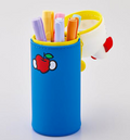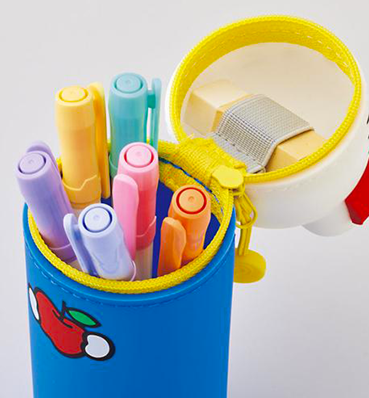 With just a press from the top, it transforms instantly into a pen stand. To close it, simply pull out the bottom. The lid also includes a holder for an eraser.