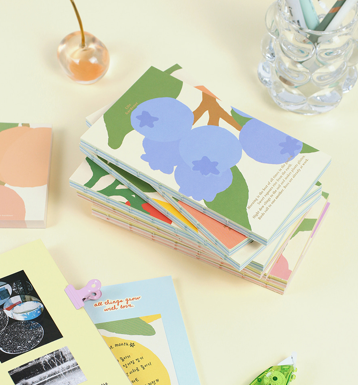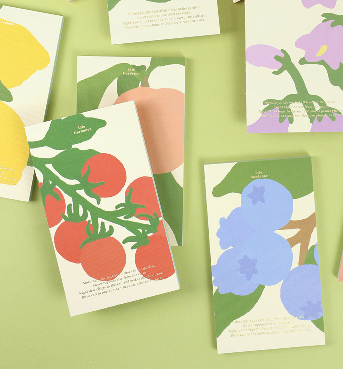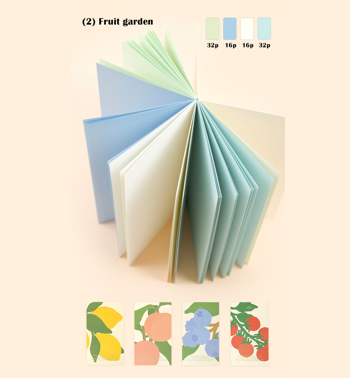 Likewise, all fruit cover designs share the same inner paper colors.