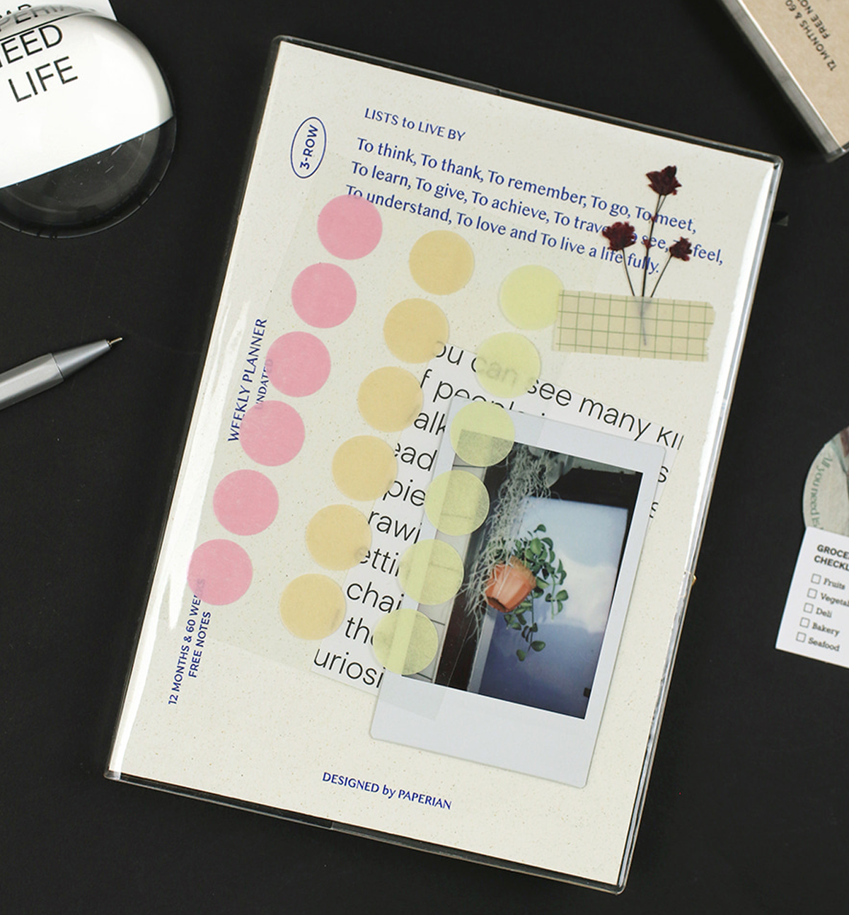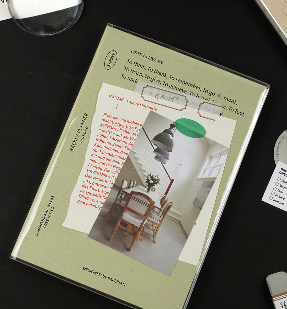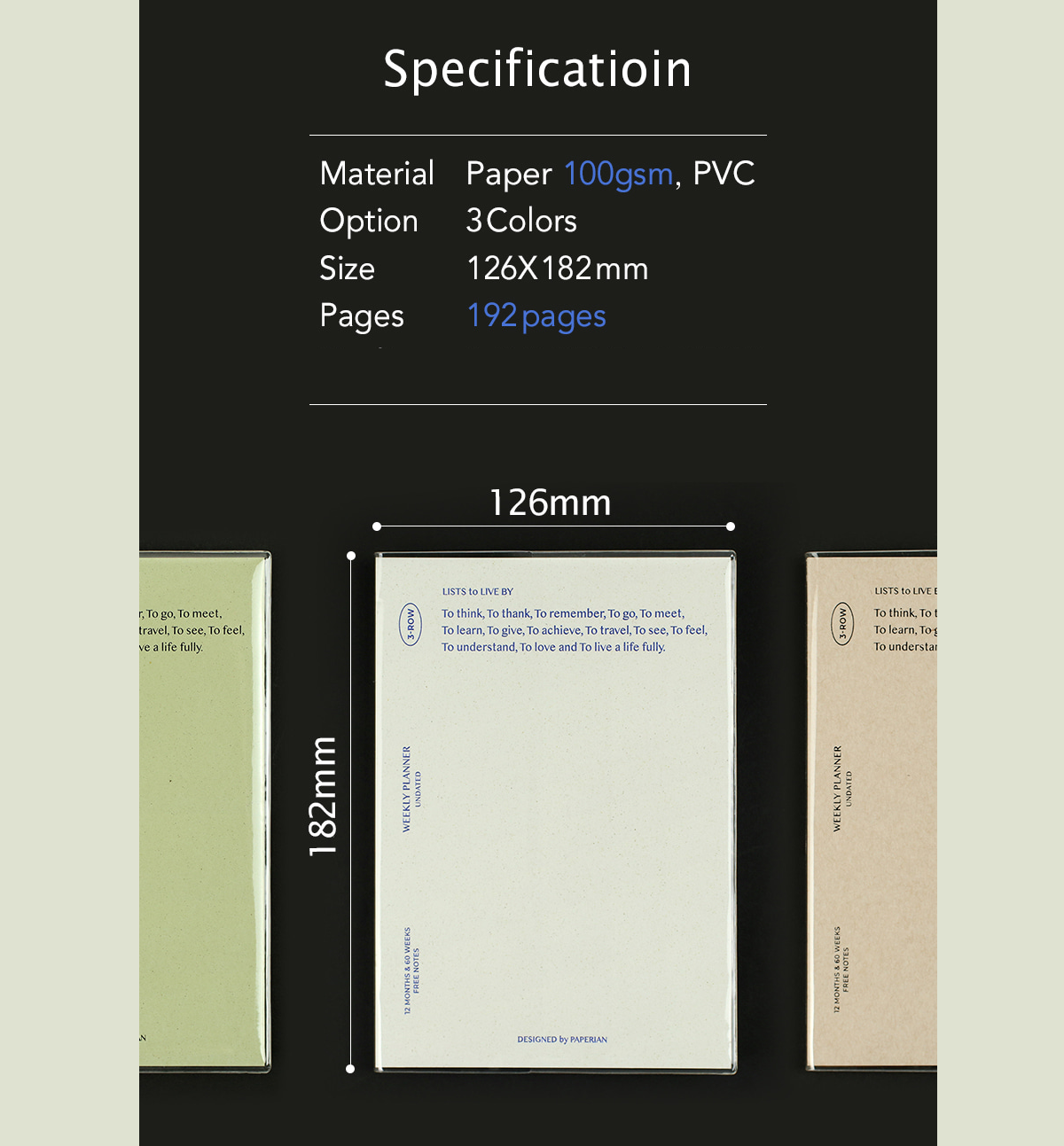 This beautiful List to Live By Weekly Planner [Three Row] Folds Flat, pocket inside, with nice cover texture and comes with a pvc cover for long lasting use.