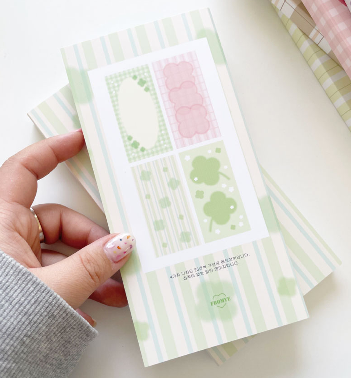 - Quantity: 1 Memobook Ver. 1 [Lucky] | 100 sheets [4 designs x 25 sheets]