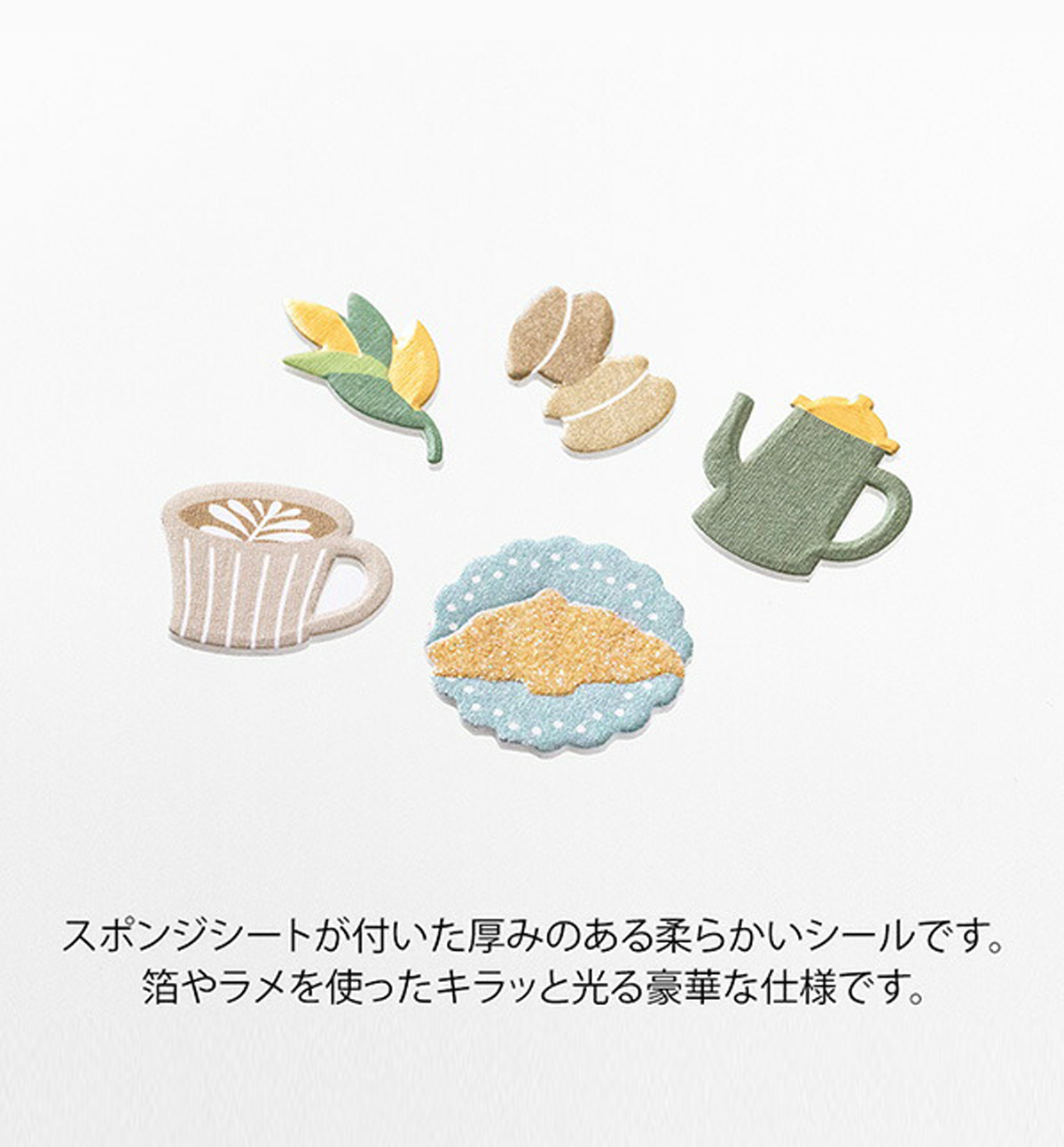 Plump and thick decoration sticker a flake-type sticker that can be used as a decoration for colored paper, albums and wrapping or as a focal point for adding to cards and letters. The thick, soft stickers comes with a sponge sheet that glimmers with the shine of the foil, creating a gorgeous impression.