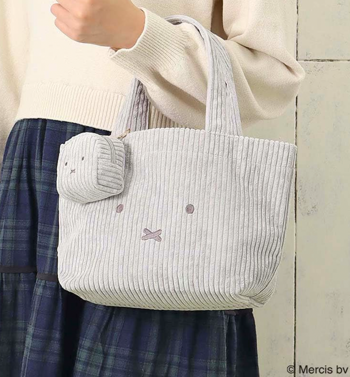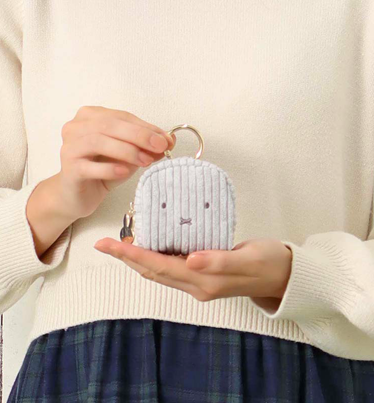 Comes with a convenient carabiner that you can attach it to your bag or wherever you like. It has a very cute design, with seasonal corduroy fabric and all-over patterned.  Miffy inner fabric that allows you to enjoy a variety of expressions and a Miffy Charm.
