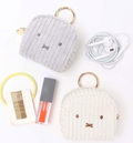 A mini pouch designed with Miffy's face. Compact size that can tightly store small items such as lipstick, eye drops, medicine and etc.