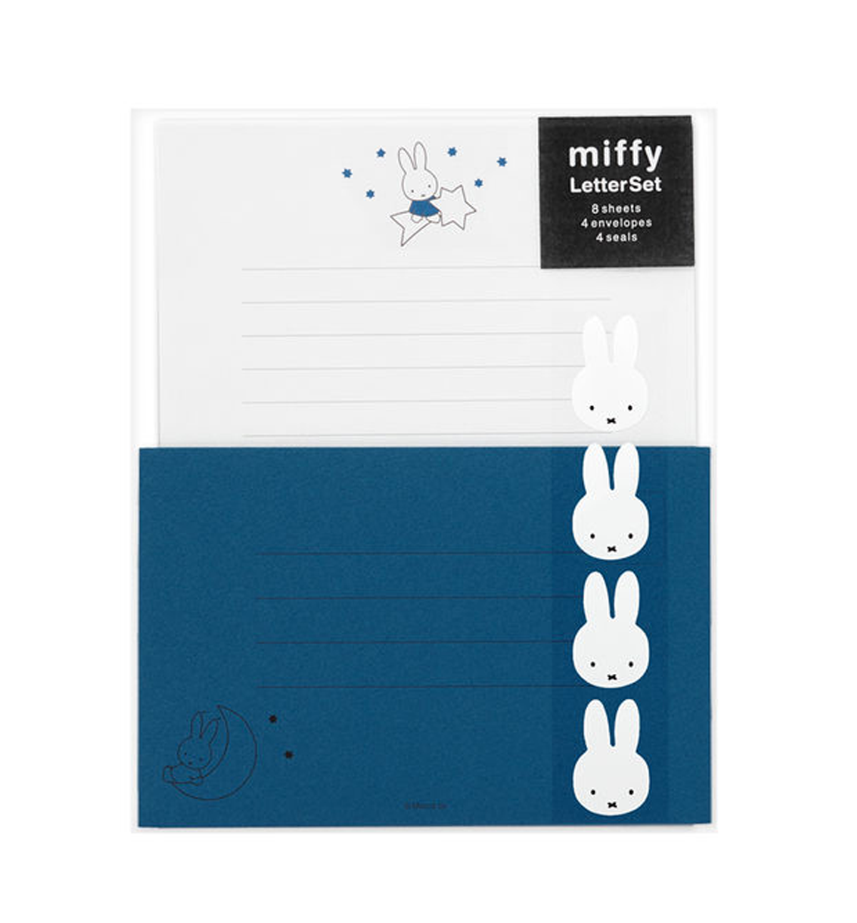 This Miffy Letter Set [Shooting Star-Blue] comes with: 8 Letters Sheets, 4 envelopes and 4 seal stickers.