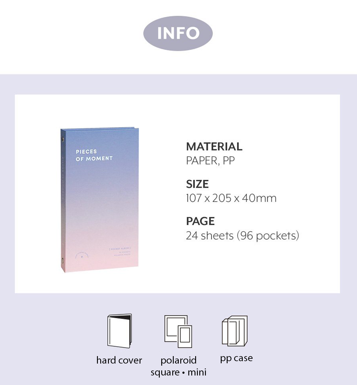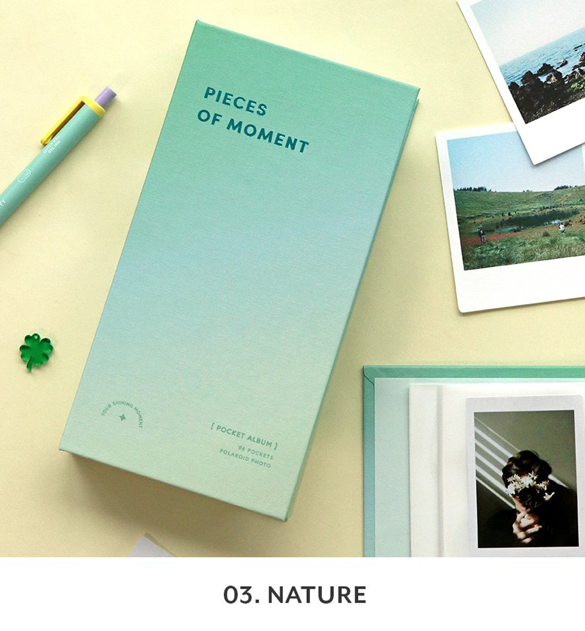 This beautiful Moment Polaroid Album comes in 4 different colors: 01. Night, 02. Romantic, 03. Nature and 04. Sunrise. Accessories are not included!