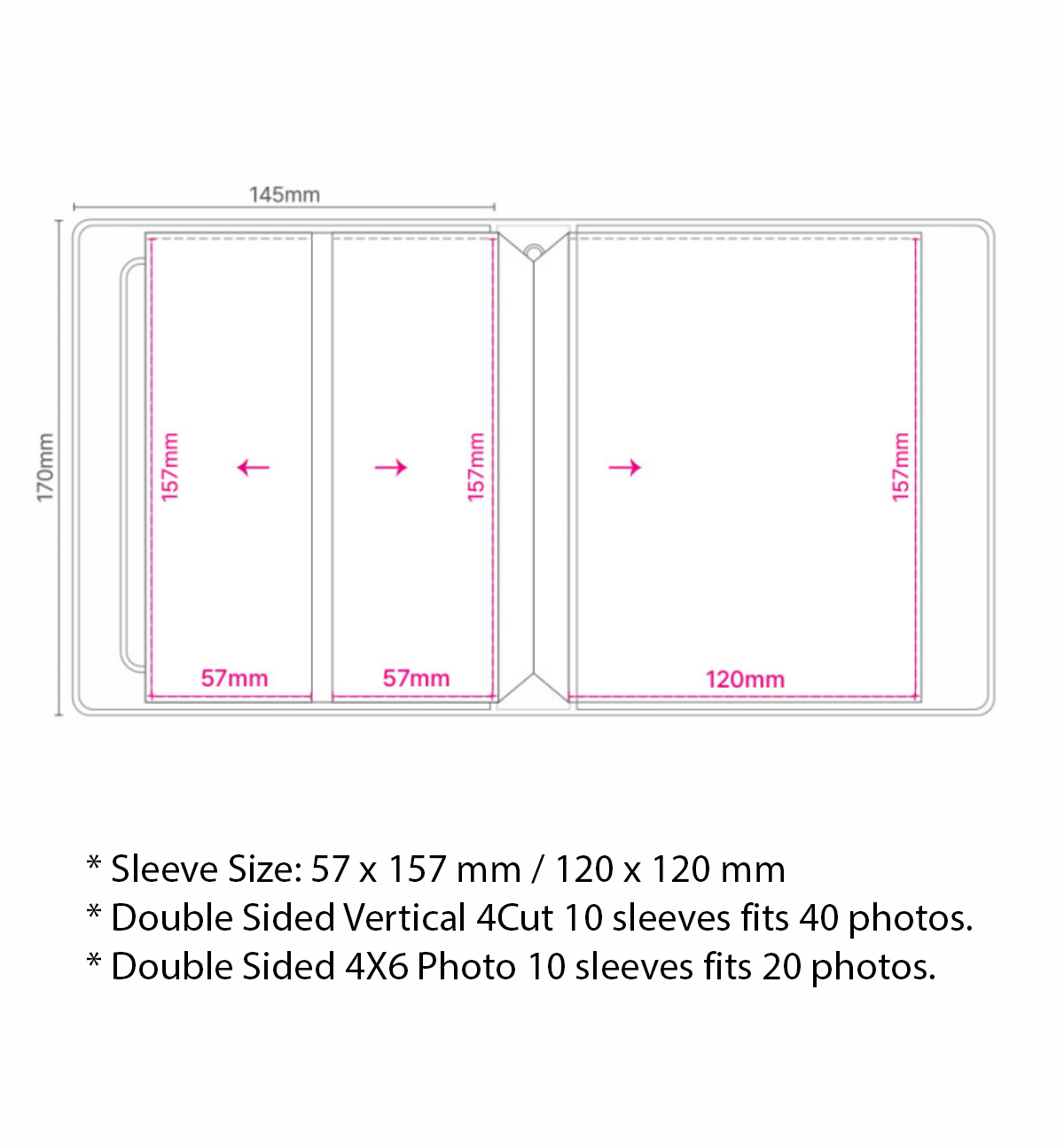 - Double Sided Vertical 4Cut 10 sleeves fits 40 photos