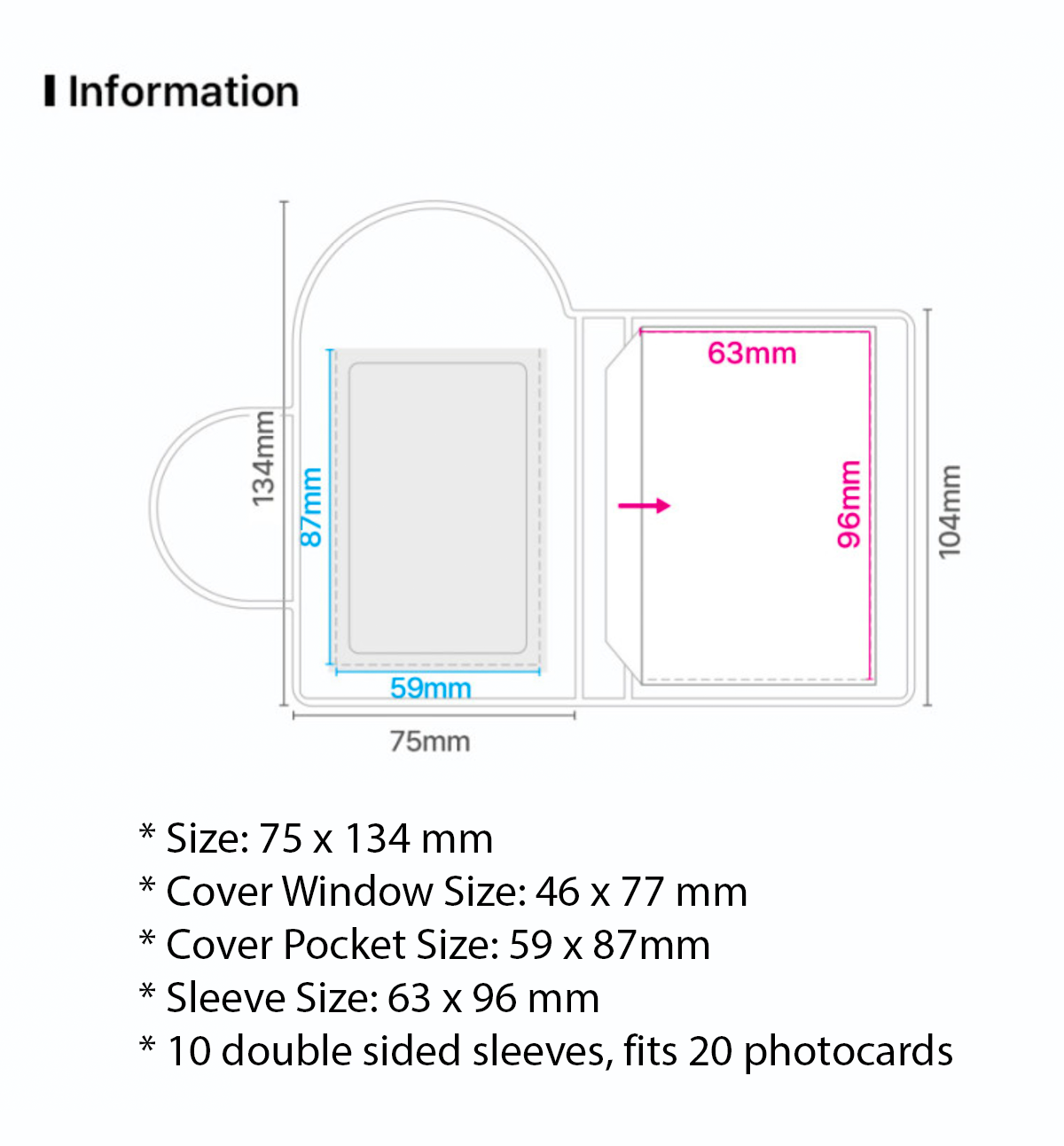 • Sleeve Pocket Size: 63 x 96 mm | 10 sleeves double sided | fits 20 photocards