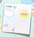 Made of paper material, so you can write memos or messages on them. Great for message cards, journal decoration, and more—so many ways to use them! Comes with washi paper deco parts!
