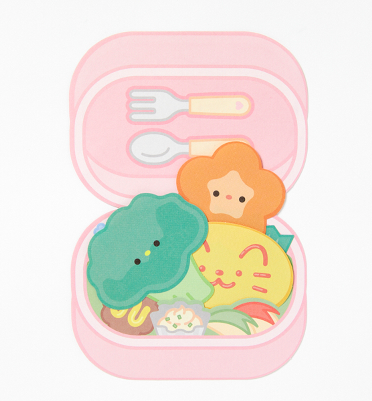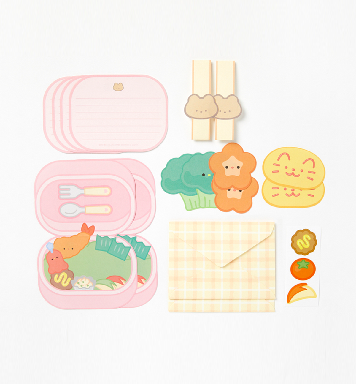 This is a cute omelet rice lunch box letter set. Choose a side dish letter, write a message, and insert it on the lunch box letter!