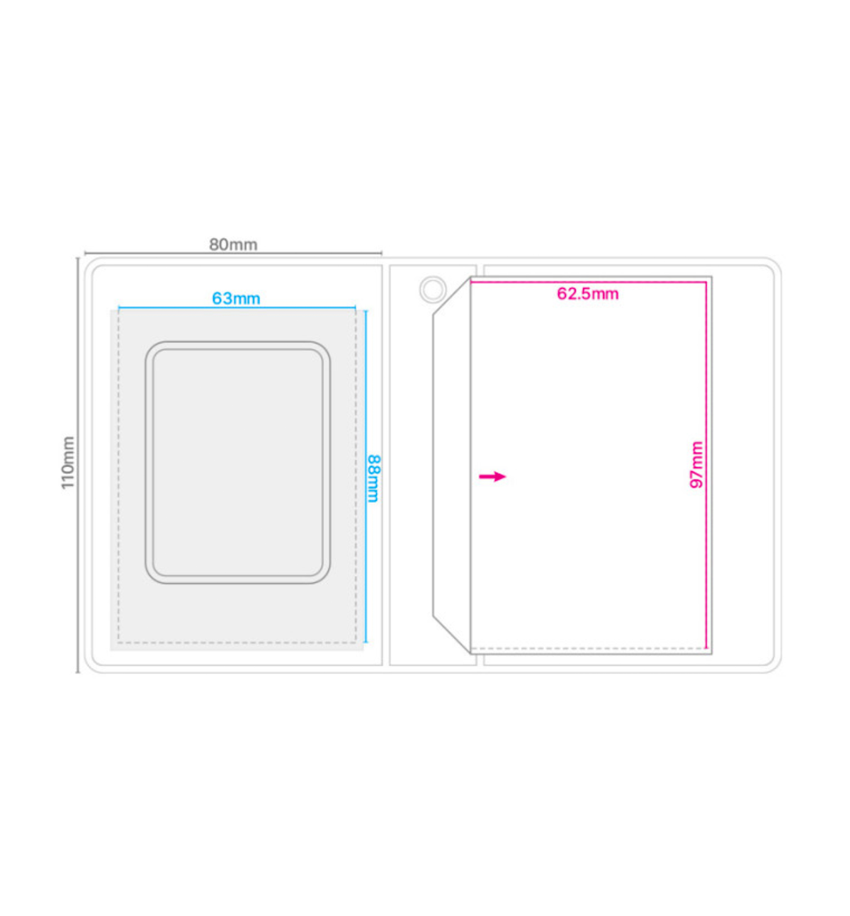 - Sleeve Pocket Size: 62.5 x 97 mm | 20 sleeves double sided | fits 40 photocards