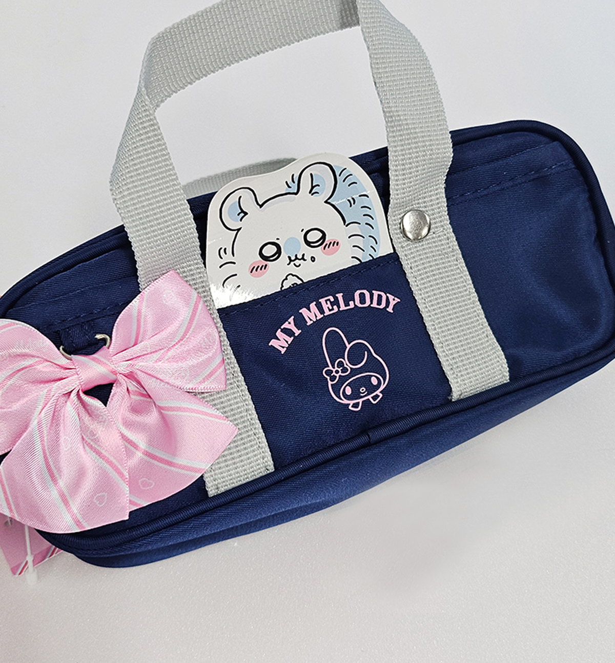 Sanrio illustrations are drawn on the front of the pouch and the ribbon. It's great as a pen pouch, but it can also be used as a cosmetic pouch!