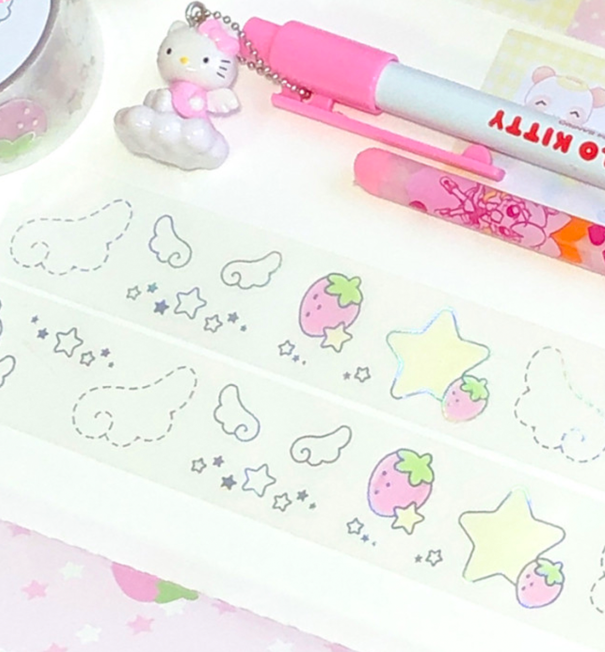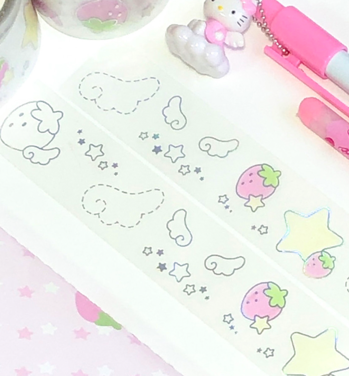 - Quantity: 1 Strawberry Angel Kiss Cut Washi Tape