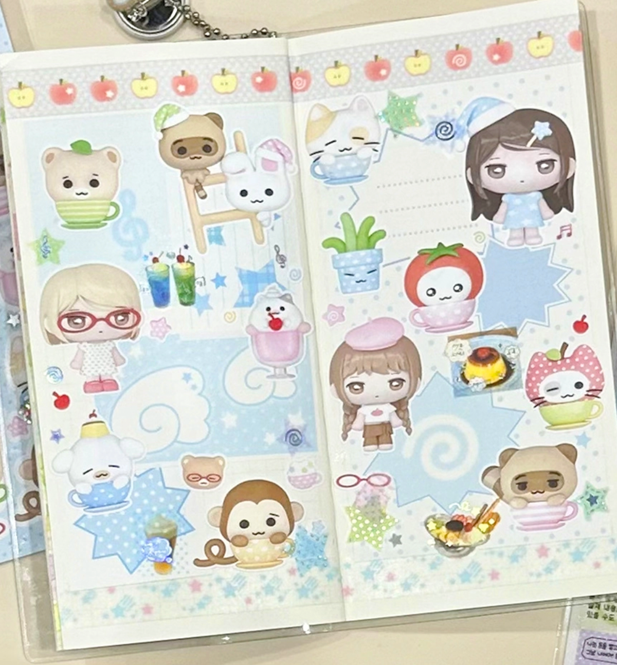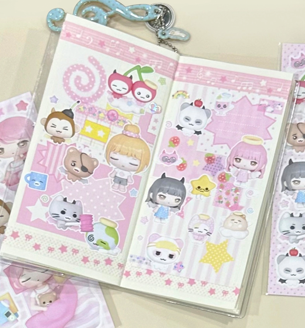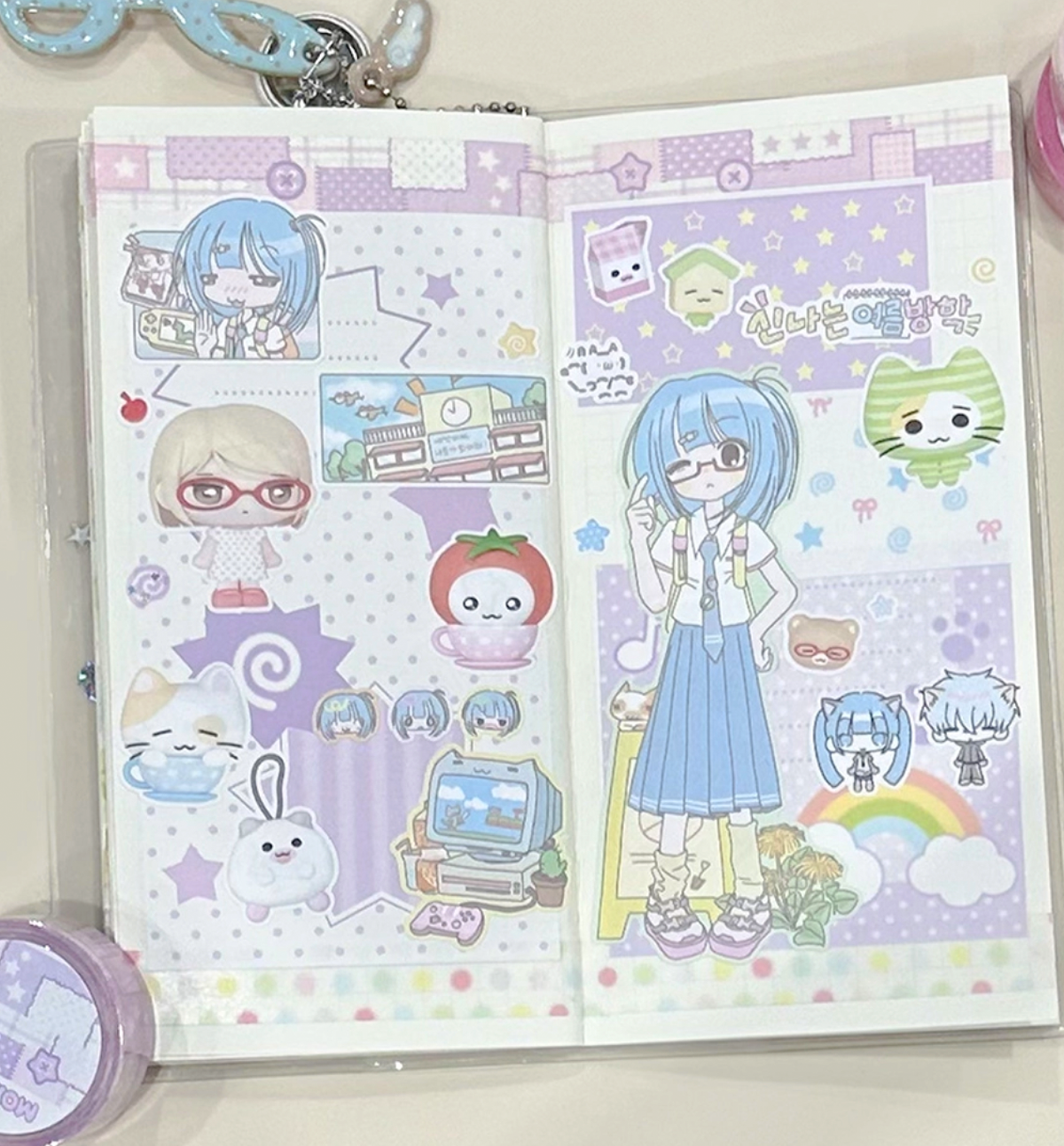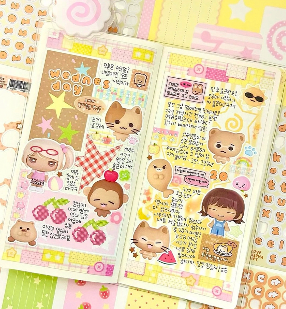 A versatile sticker set featuring layout elements and patterned designs with cute graphics. Perfect for diaries, scrapbooks, and DIY projects. Easy to write on, they add depth and charm to any page.