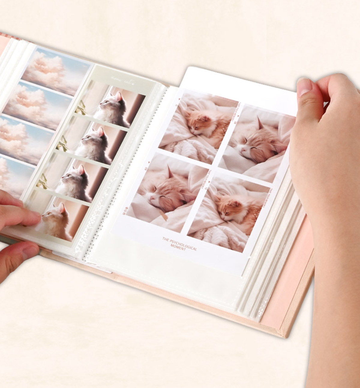 This charming pocket album holds up to 100 sheets, front and back, giving you plenty of space for your favorite memories. Perfect for photos from 4-cut strips to standard 4x6 prints, its luxurious paper texture adds a touch of elegance to every page. Capture your special moments and create a heartwarming keepsake with the Unmatched Friends album.