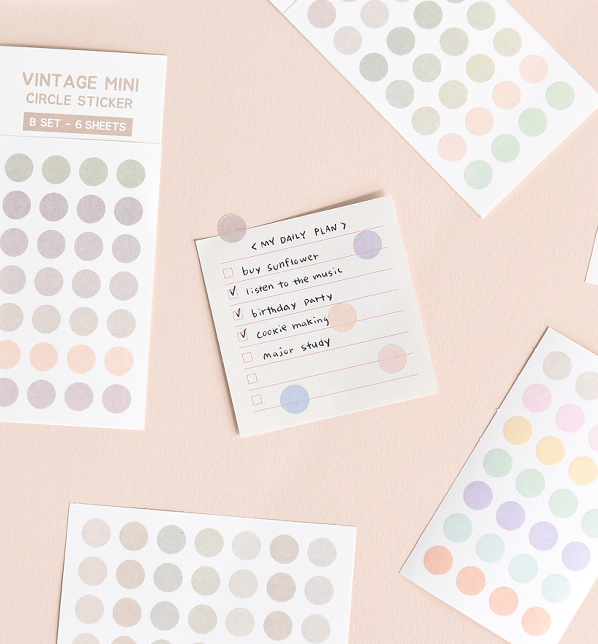 - Quantity: 1 Vintage Mini Circle Sticker Set